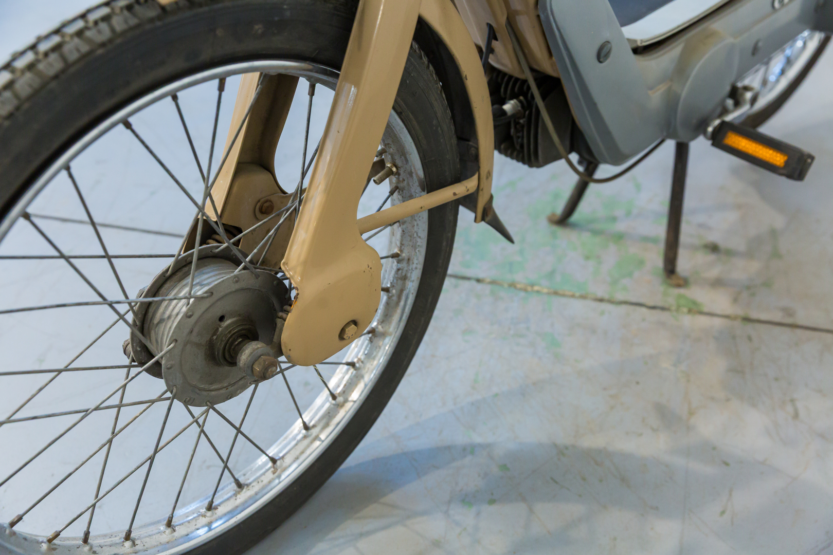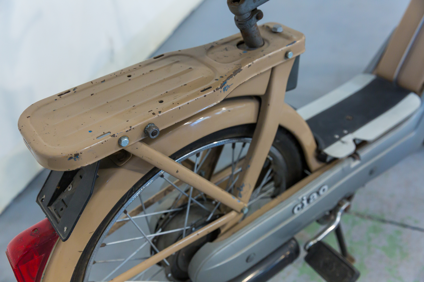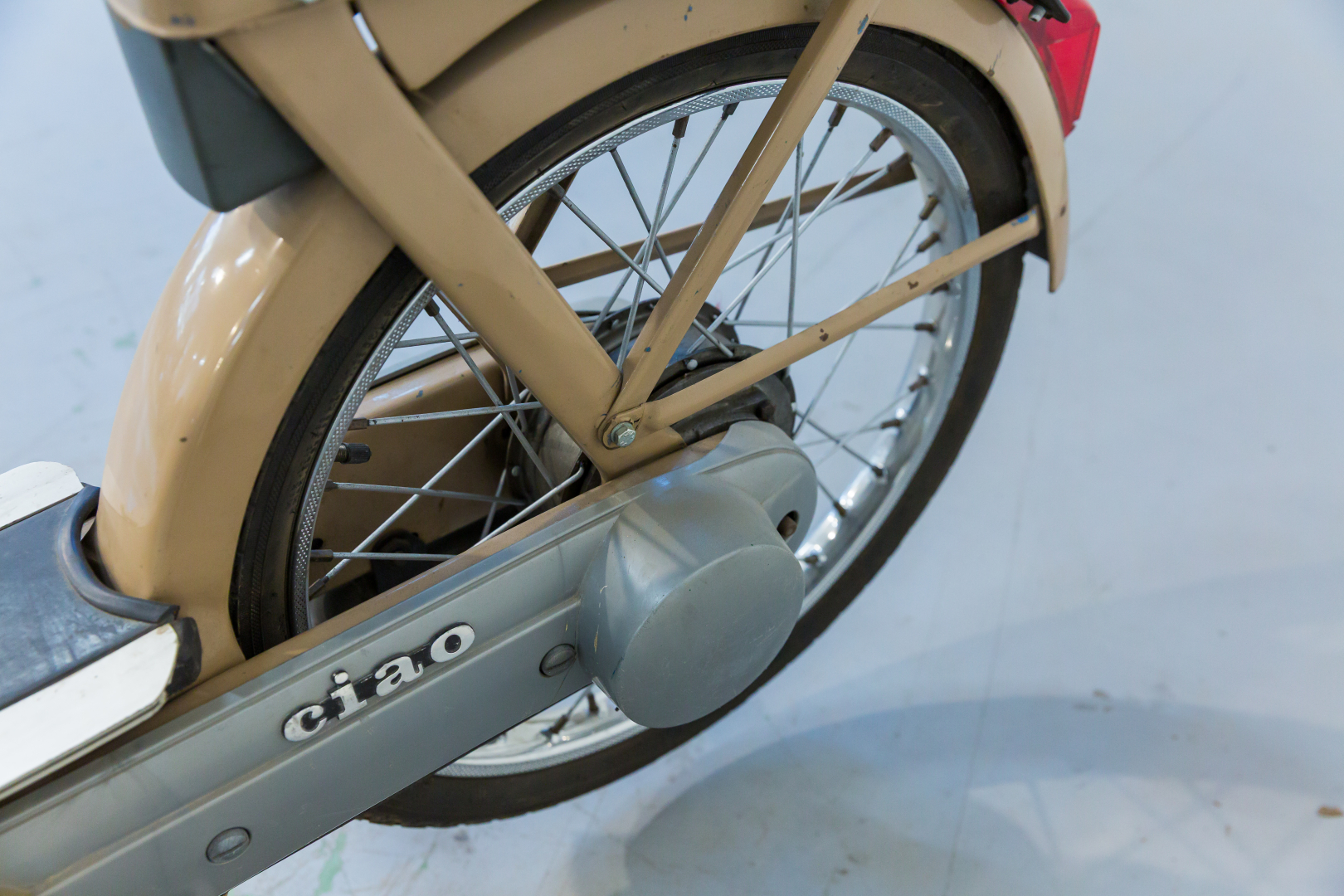 Il Ciao, iconico ciclomotore prodotto dalla Piaggio sin dal 1967, uno dei ciclomotori più venduti di tutti i tempi. Caratterizzato da una semplicità meccanica senza eguali, spinto da un piccolo motore monocilindrico orizzontale a 2 tempi da 49cc e dotato di un telaio in lamiera d’acciaio, le cui forme richiamano le biciclette da donna del tempo e al cui interno è ricavato il serbatoio del carburante. Il modello proposto è un R2, conservato, discrete condizioni, privo di alcuni componenti. Si consiglia un controllo generale prima dell’utilizzo.