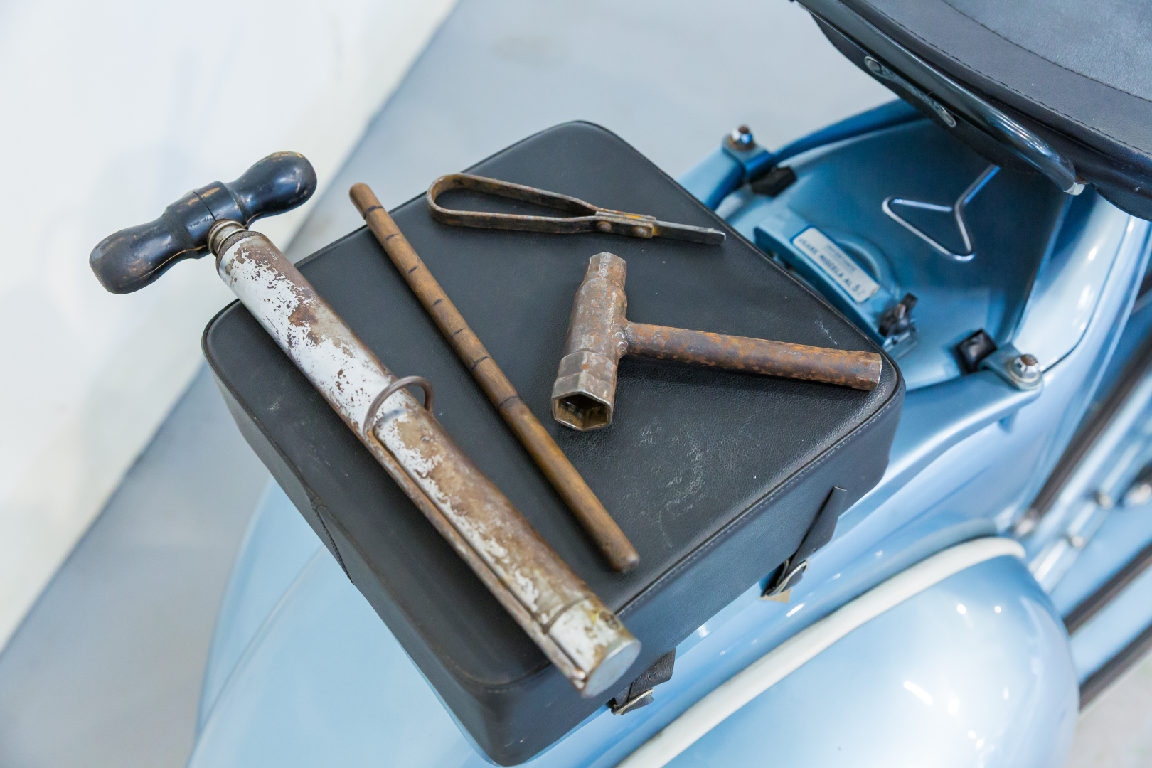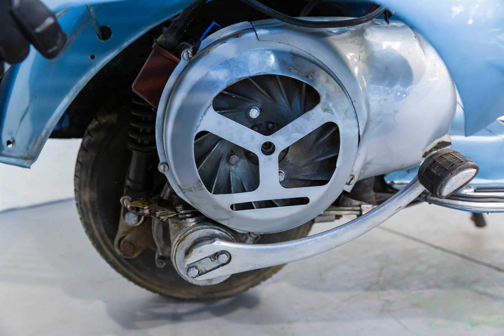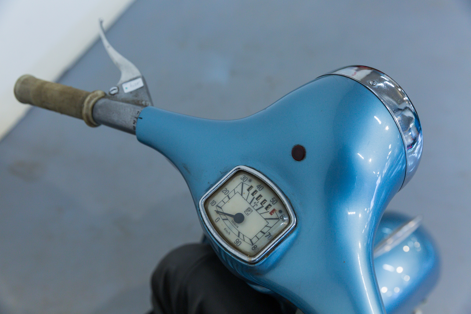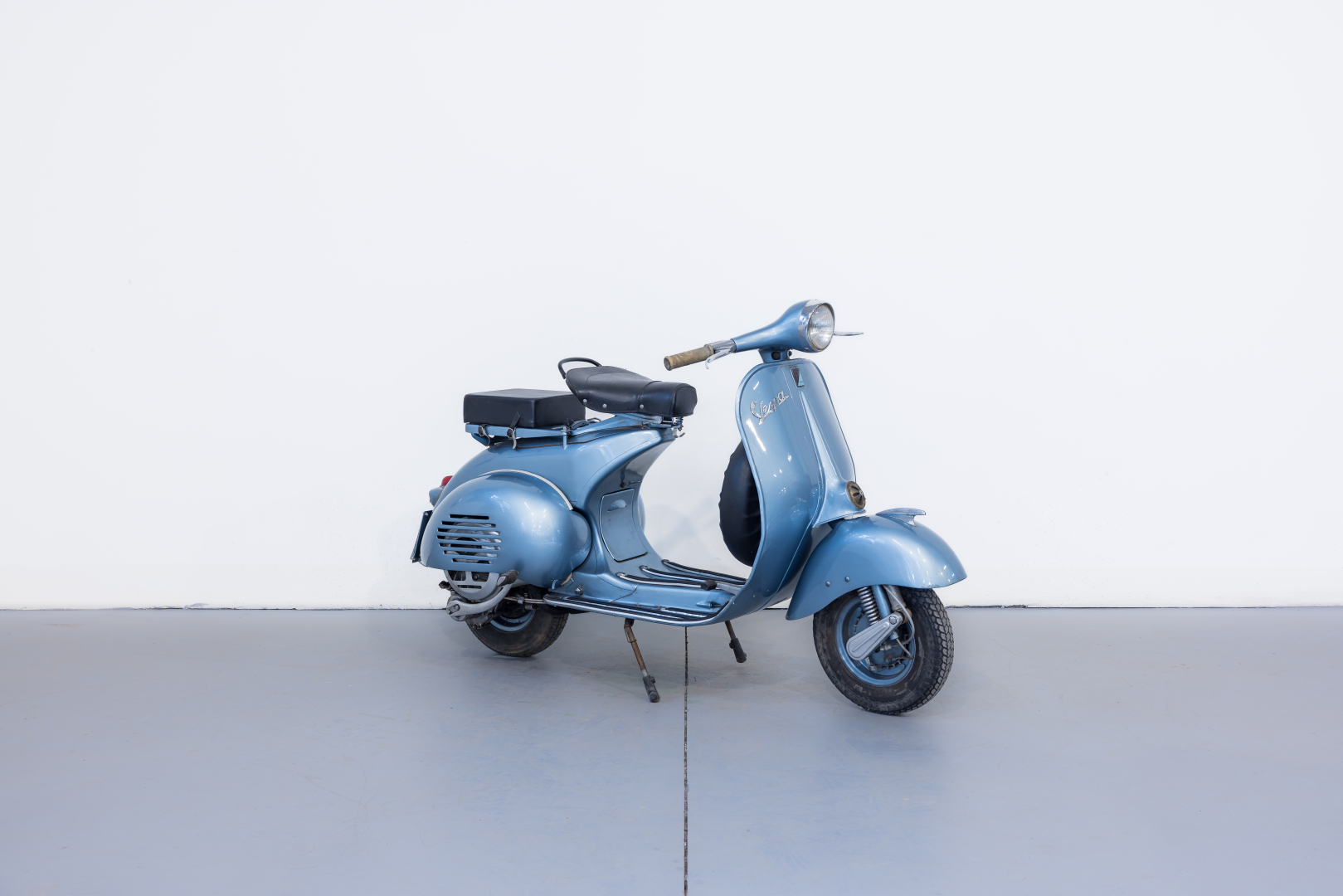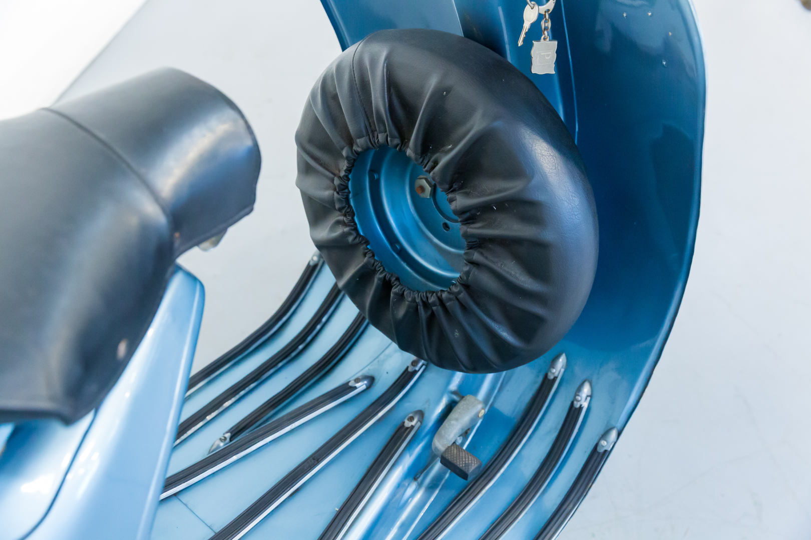 Nel 1957 la Piaggio presenta la Vespa 150 denominata VBA 1 con motore pressoché identico al modello del 1956 denominato VL3M ma con la variante del carburatore MA19D. Il manubrio ha una nuova forma ed è ricavato per fusione con canalizzazione per il passaggio di tutti i cavi di comando, il faro è maggiorato ed ha un diametro di 115 mm. Il cambio è a tre velocità. Conservata, in ottime condizioni. Si consiglia un controllo generale prima dell’utilizzo.