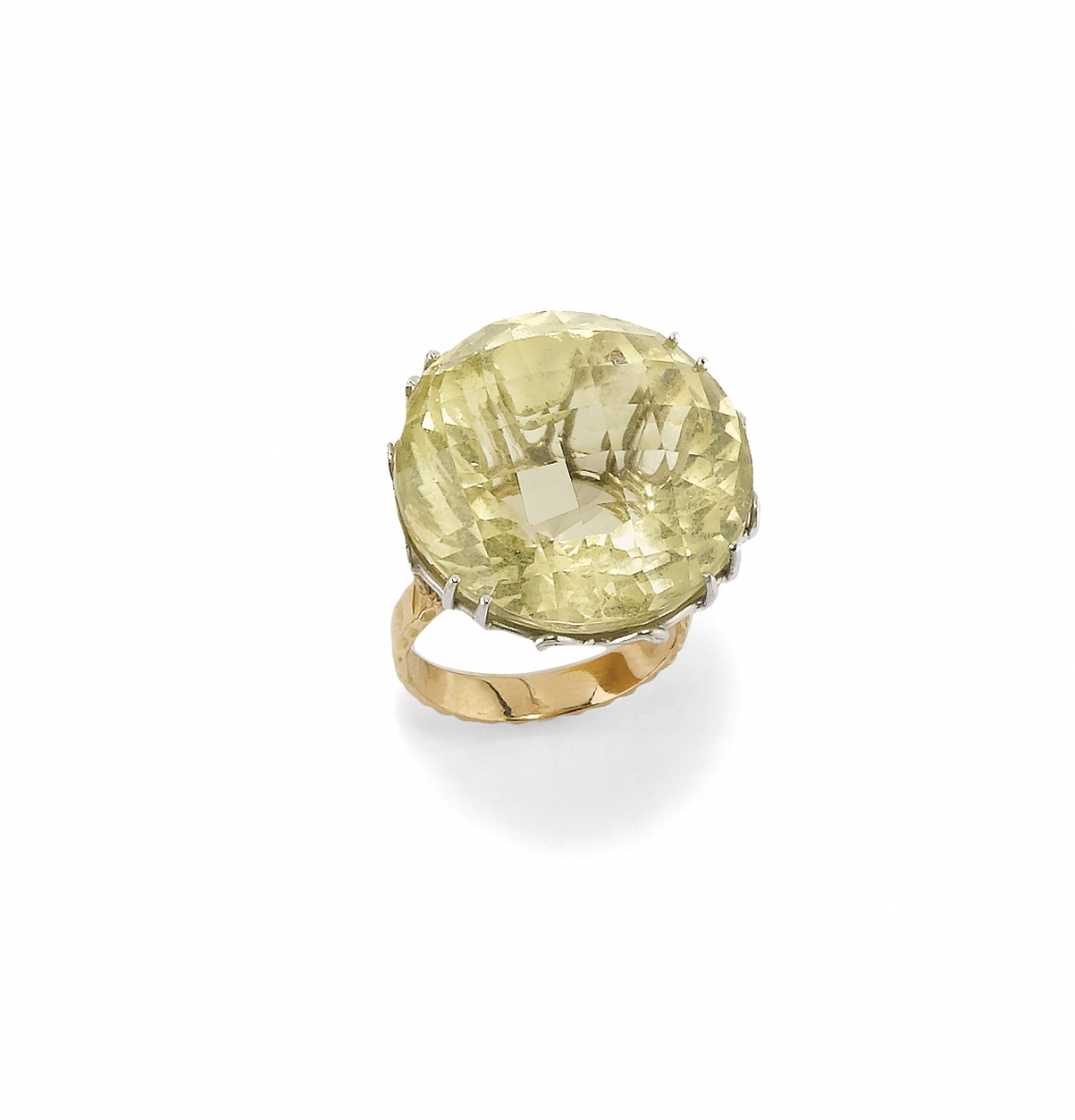 in oro bicolore con grande quarzo citrino sfaccettato di ct 50,00 ca.