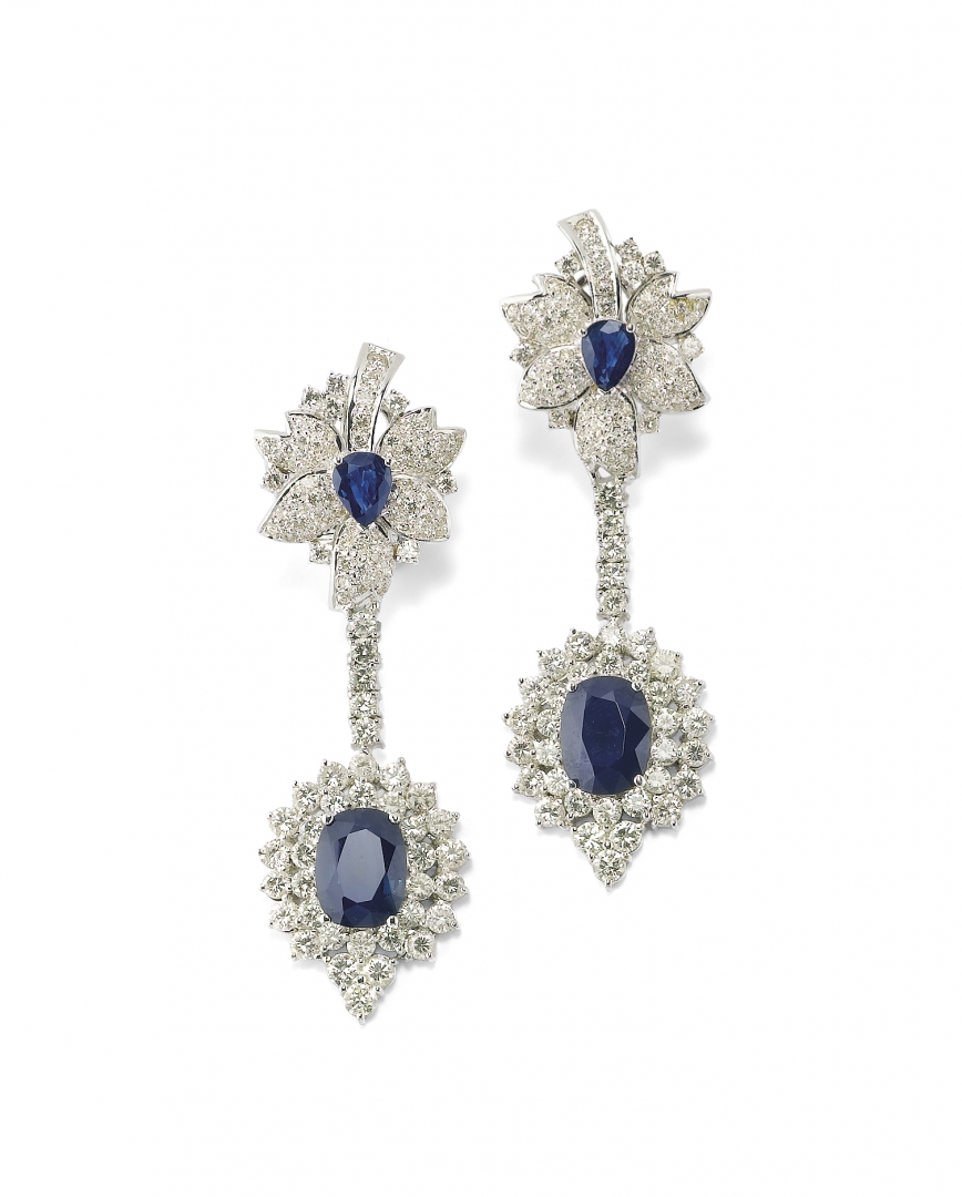 PAIO DI ORECCHINI PENDENTI IN DIAMANTI E ZAFFIRI