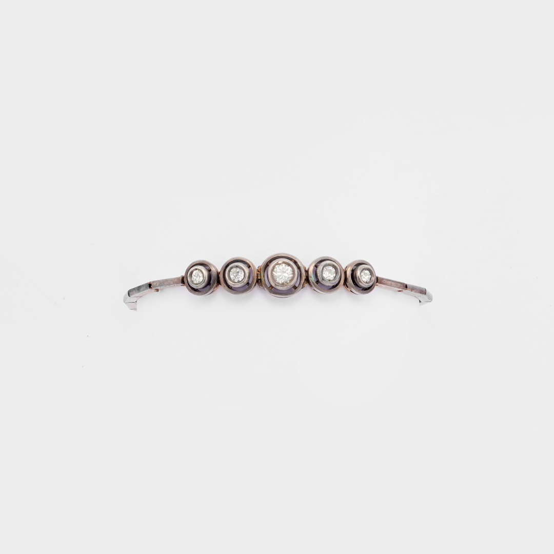 in argento ed oro giallo e con cinque diamanti taglio Vecchia Miniera e Vecchia Europa per complessivi ct 0,40 ca.