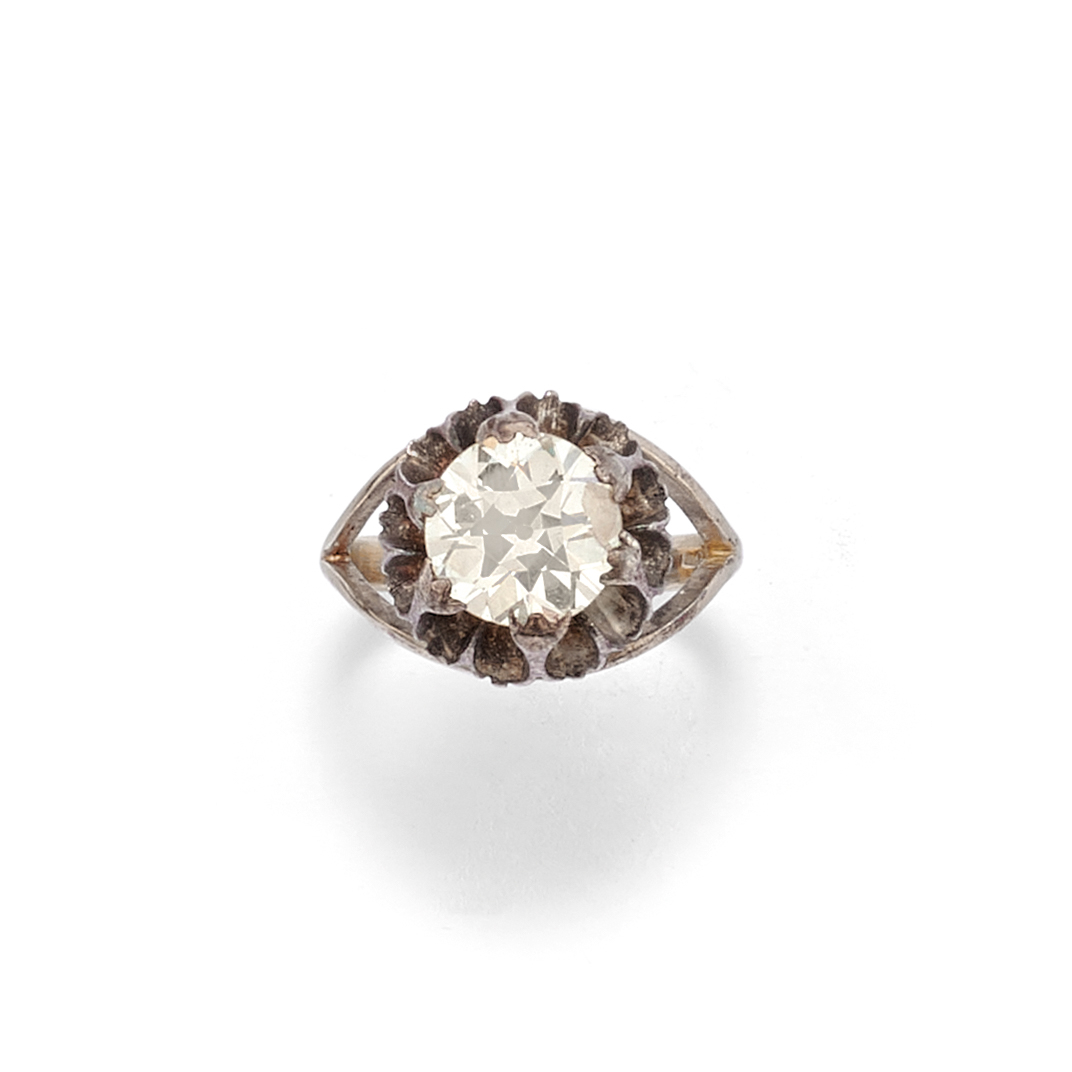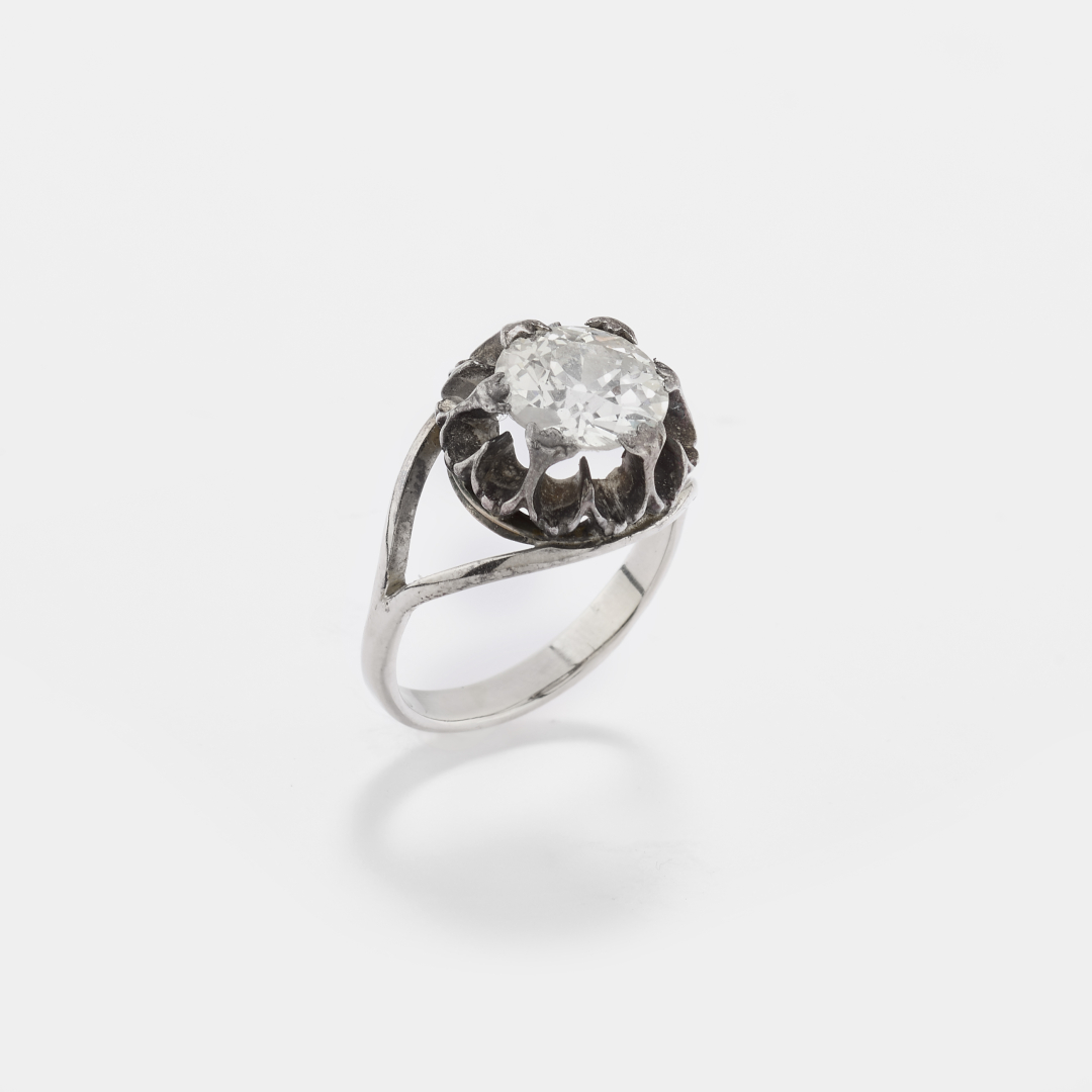 in argento e oro bianco con diamante centrale taglio Vecchia Europa di ct 1,70 ca.
