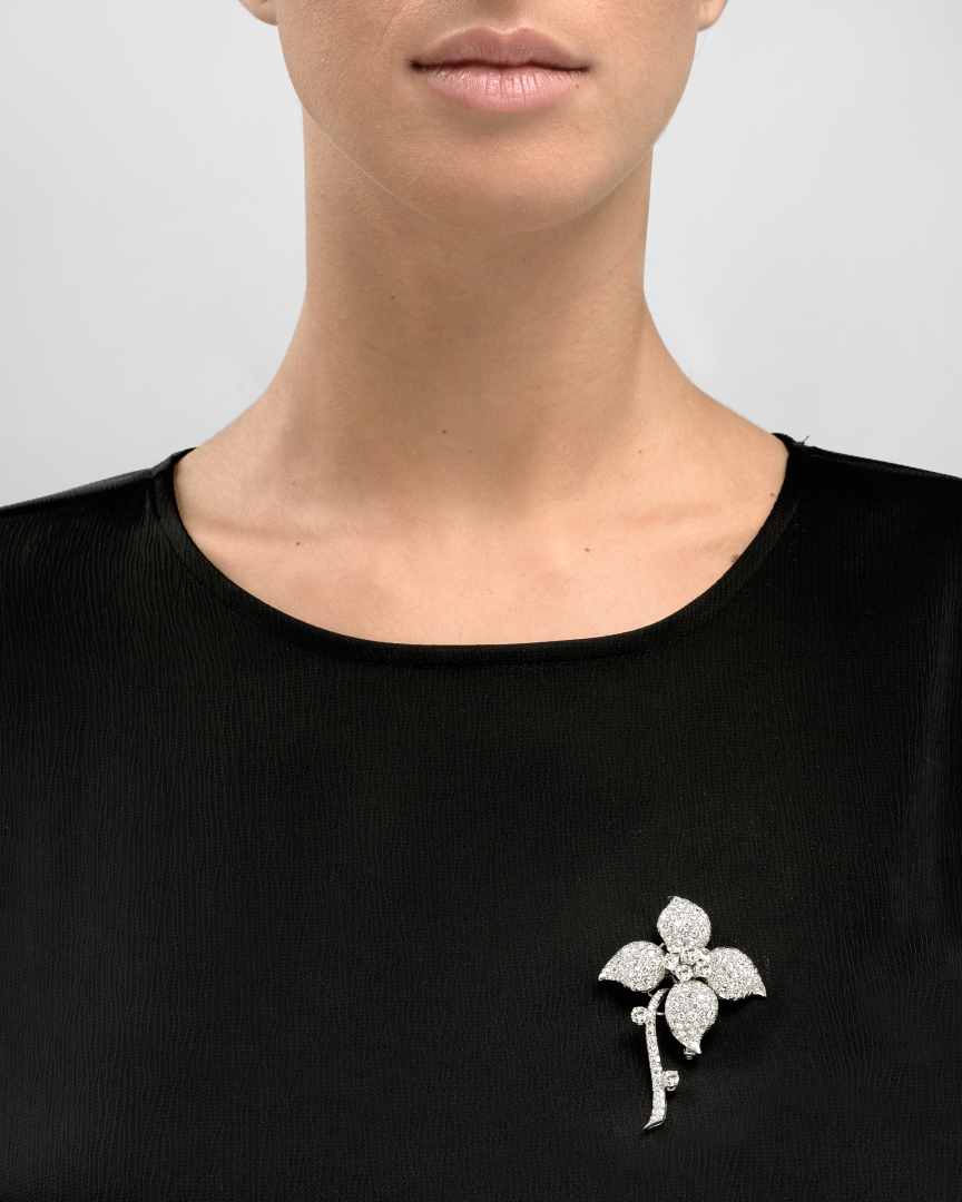 a forma di fiore in oro bianco con quattro foglie in diamanti taglio huit-huit e full-cut per complessivi ct 3,50 ca.