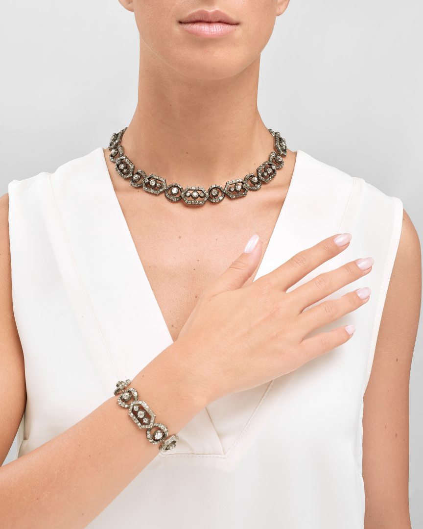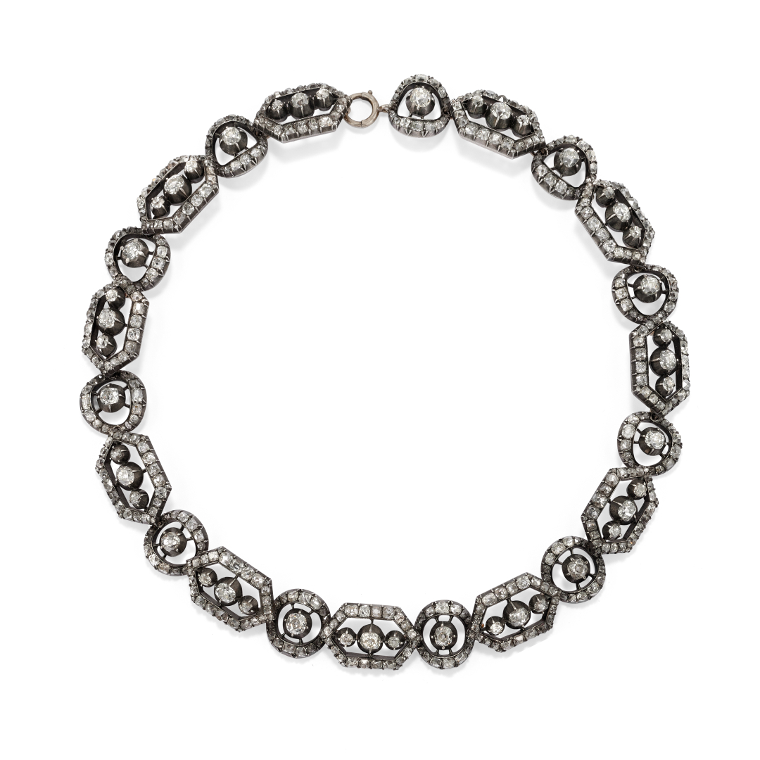 formata da una collana ed un bracciale ad elementi geometrici esagonali e ovoidali con diamanti taglio Vecchia Miniera per complessivi ct 24,00 ca. Italia fine del XIX secolo.