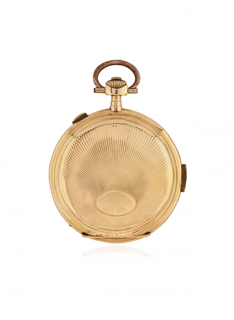 OROLOGIO DA TASCA A SAVONETTE IN ORO CON CRONOGRAFO E RIPETIZIONE A MINUTI, FIRMATO INVICTA, 1910 CIRCA