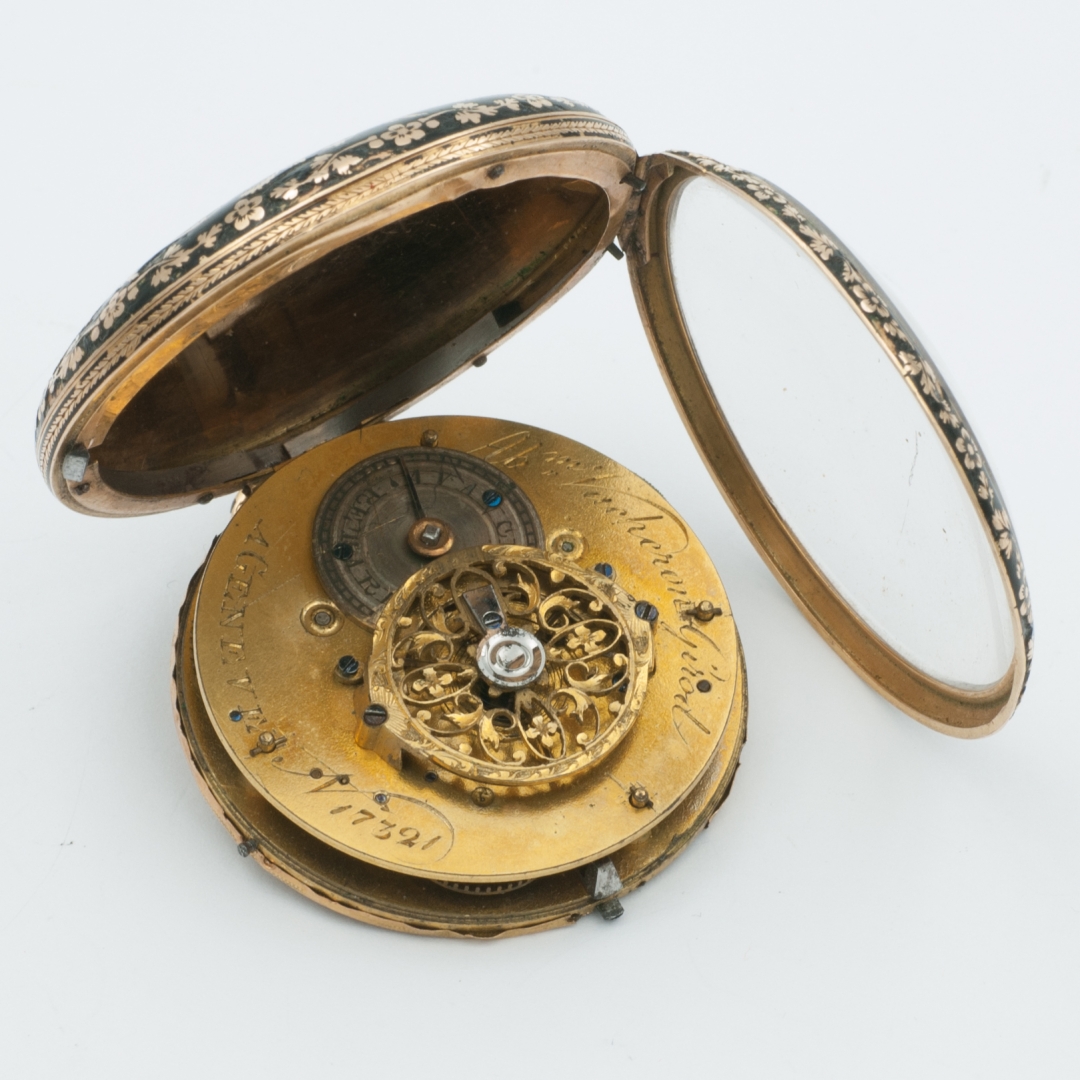 OROLOGIO DA TASCA SVIZZERO A CHIAVETTA CON SMALTI, FIRMATO VACHERON GIROD, 1800 CIRCA
