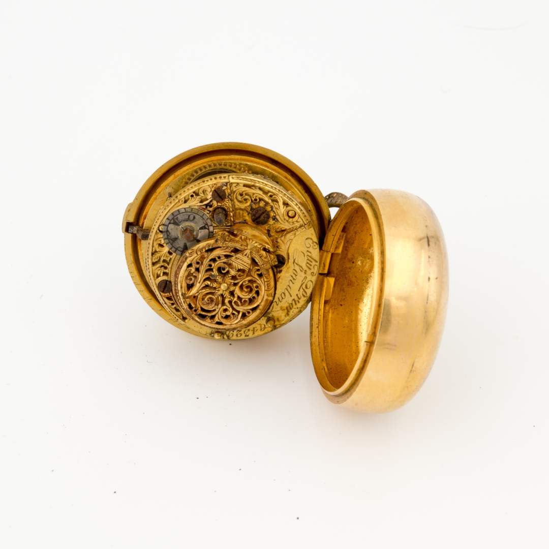 Cassa interna a due corpi in metallo dorato con una controcassa decorata. Terza cassa rivestita in tartaruga con decorazione clouté.