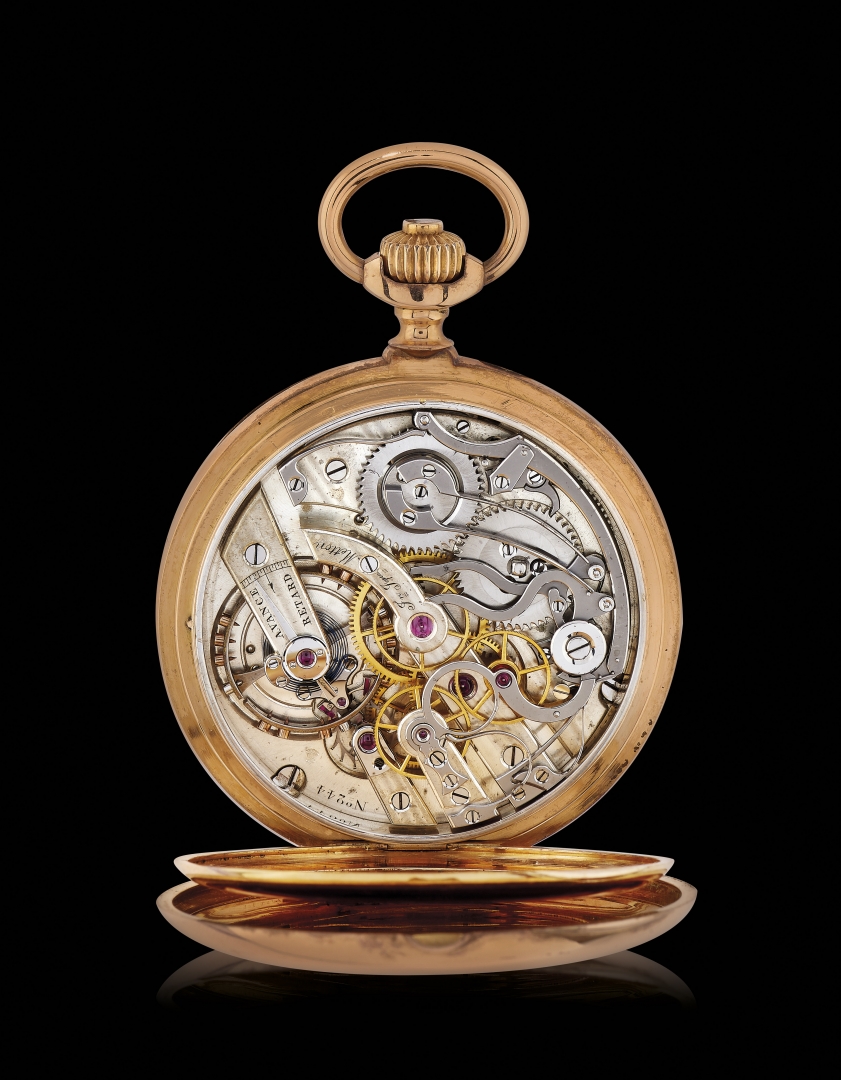OROLOGIO DA TASCA IN ORO FIRMATO METTON CON CRONOGRAFO, 1890 CIRCA