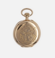 Cassa a quattro corpi in oro, firmata, n. 167435, cuvette siglata e firmata "Fabricado pour la Casa L & E Fabre, Buenos-Aires", fondello inciso con monogramma.