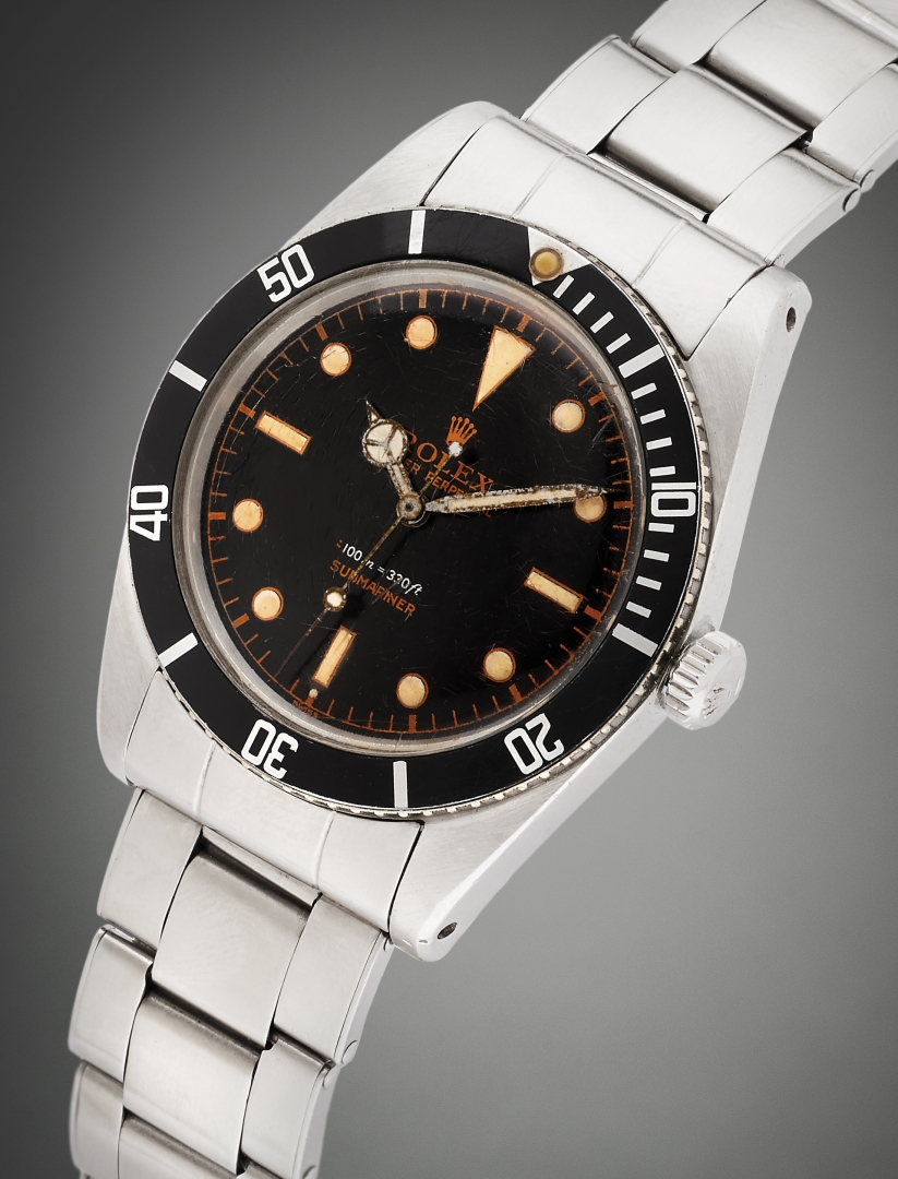 L’esemplare in catalogo si contraddistingue per lo straordinario quadrante con le scritte dorate che hanno assunto una forte tonalità “arancio” e per il puntino luminescente apposto sulla minuteria sotto al 6, particolarità ribattezzata dai collezionisti come “Exclamation mark”. Caratteristica, quest’ultima, riscontrabile nei modelli di fine produzione della referenza 5508. Altro dettaglio di tutto rilievo è il corredo che vede l’orologio accompagnato dal suo astuccio originale e la garanzia Rolex italiana firmata dal rivenditore Blondi di Modena.