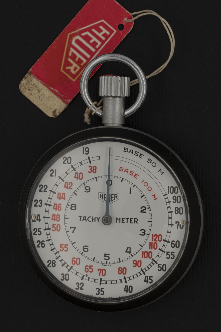 Contasecondi sportivo a 1/100 di secondo con indicazione a 3 secondi, tachimetro su base 50m e 100m, contasecondi rattrappante a 1/100 di secondo.