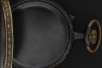Quadrante: in smalto bianco, indici a numeri romani entro cartouche, dipinto di locomotiva, suddivisione dei minuti, quadrantino dei secondi.