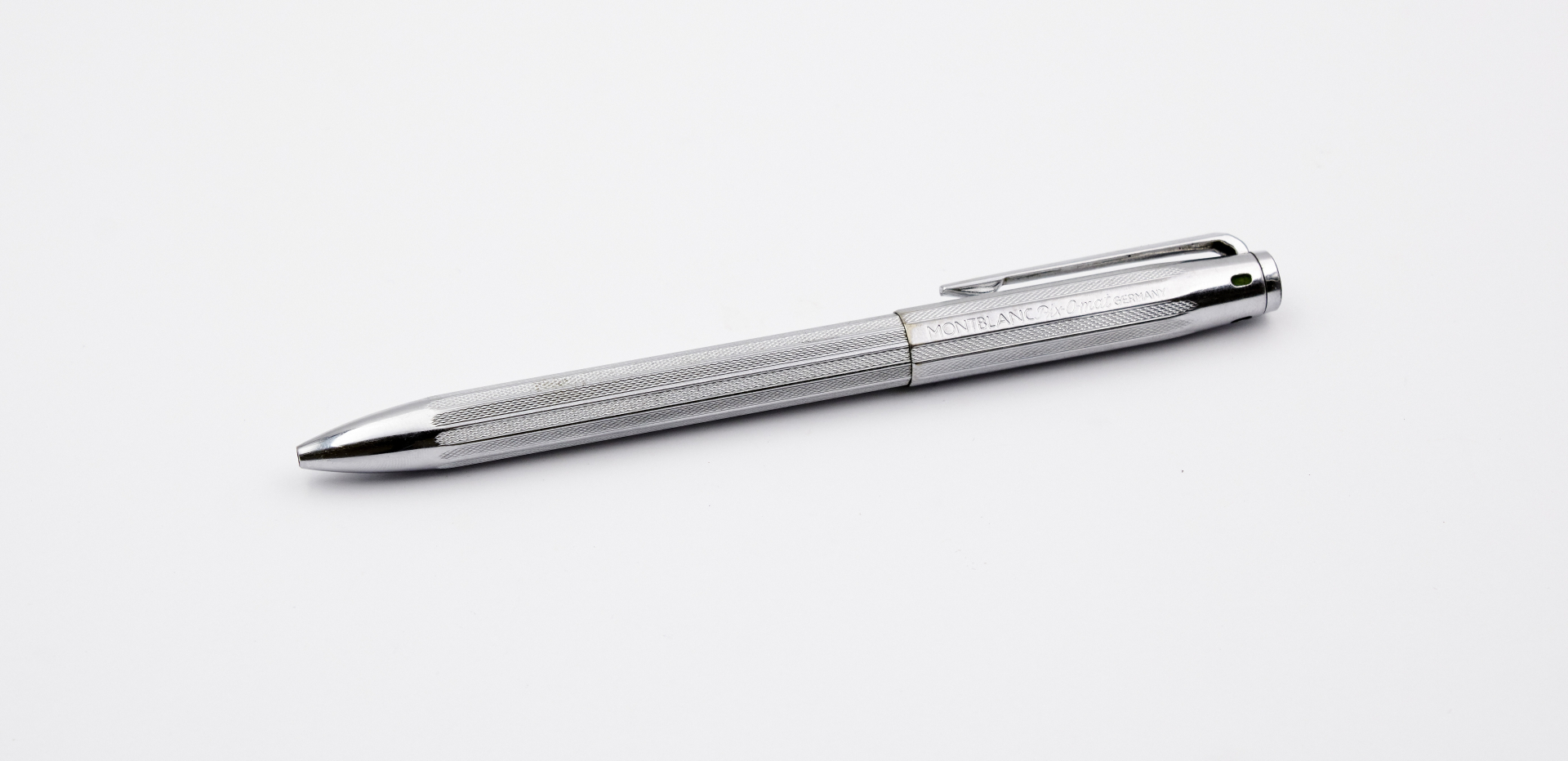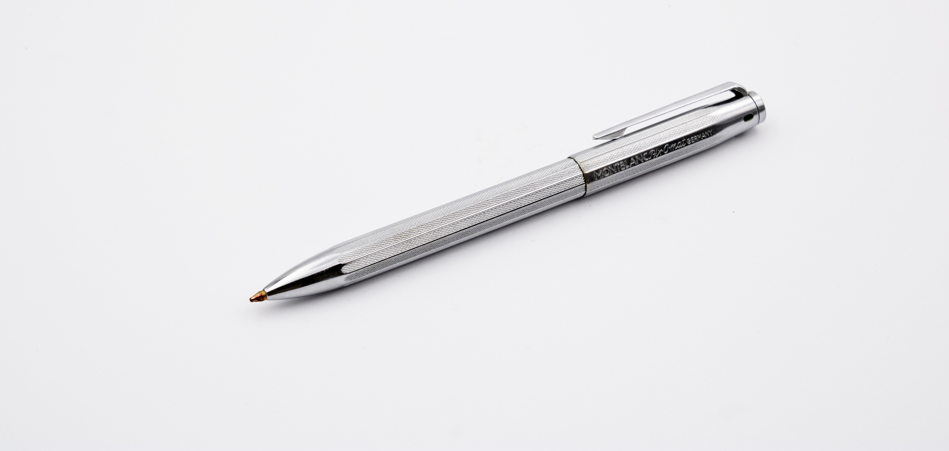 In metallo sfaccettato con lavorazione a guilloché, meccanismo a scatto azionabile premendo in corrispondenza del colore scelto in piano orizzontale.