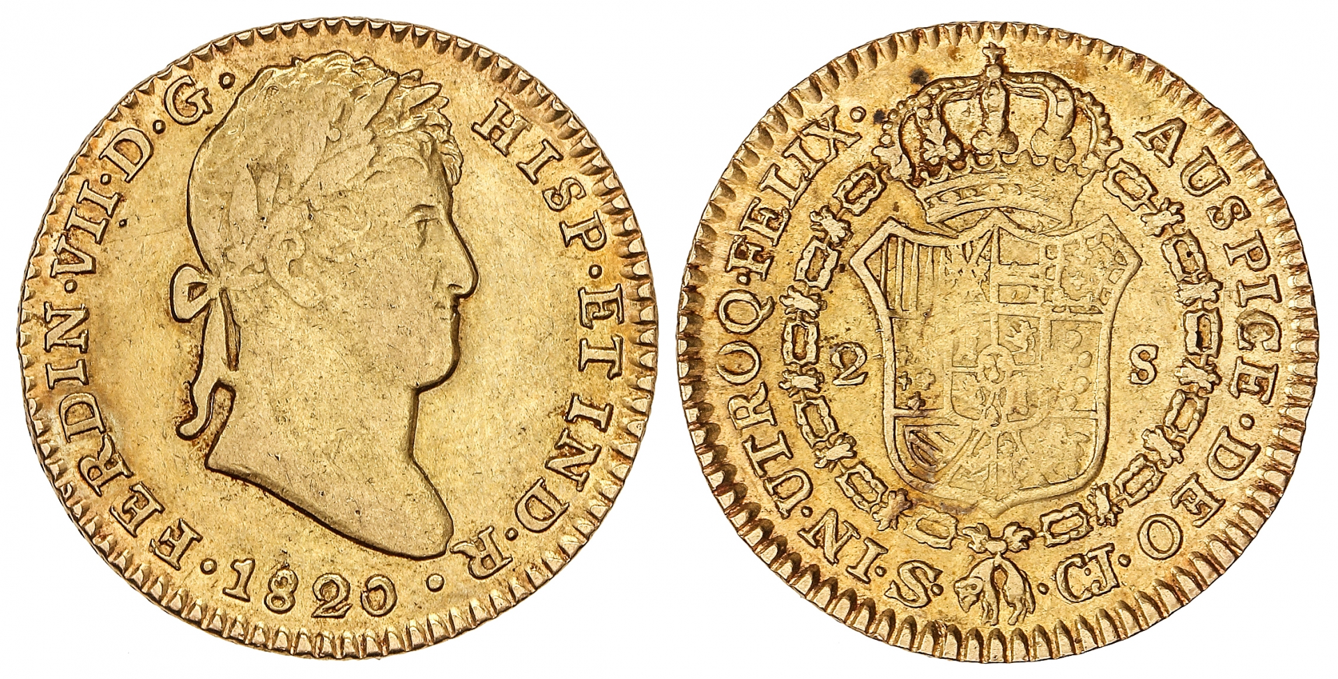2 Escudos. 1820. SEVILLA. C.J. 6,70 grs. Cal-262. MBC+.
