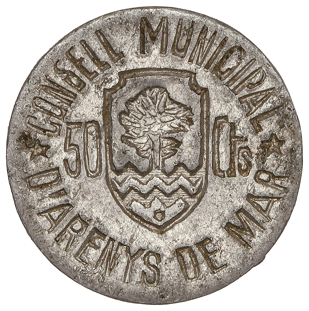 50 Céntims. C.M. d´ARENYS DE MAR. Al. (Leves oxidaciones). Vti-L18. MBC+.