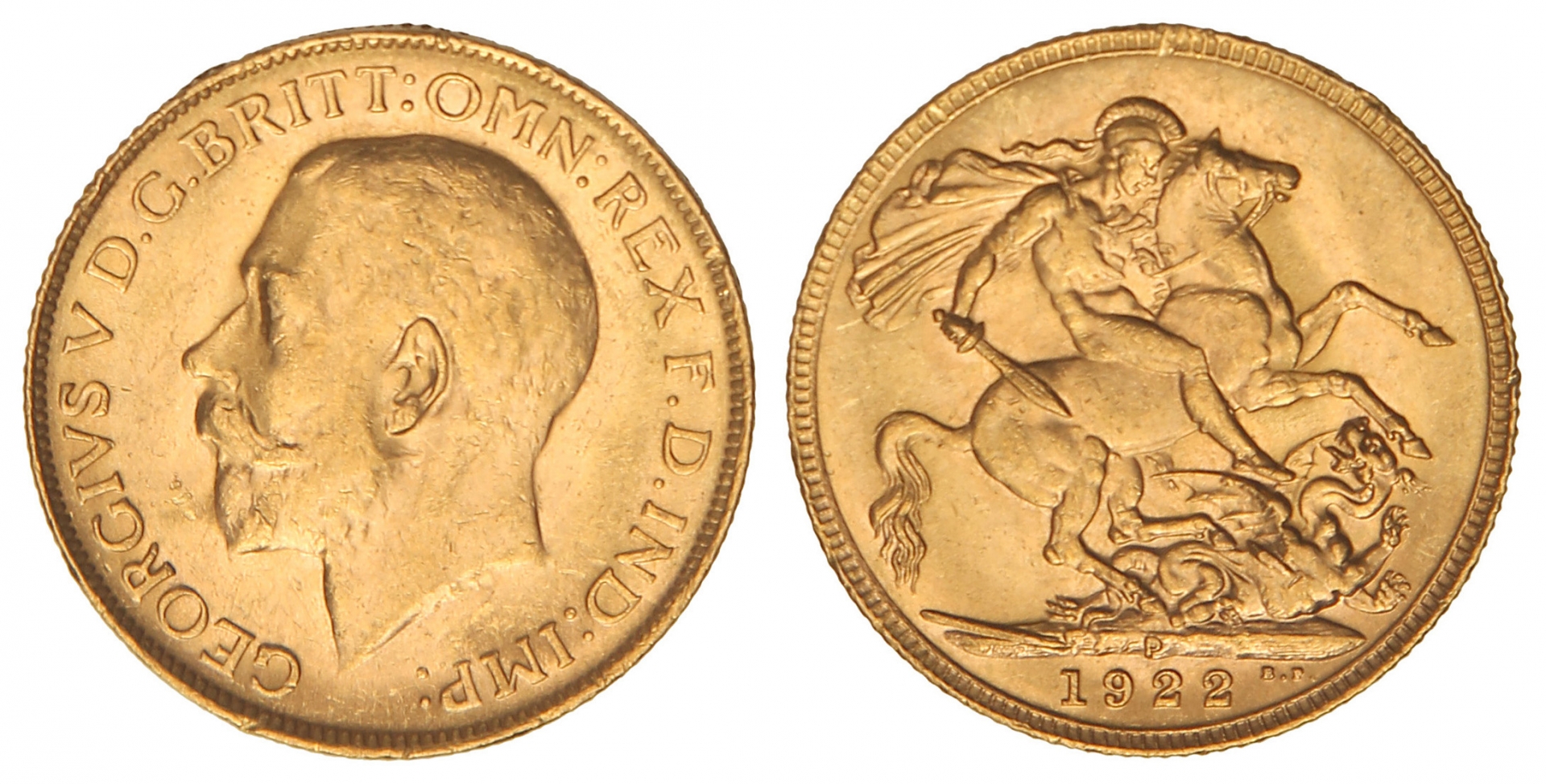 Soberano. 1922-P. JORGE V. PERTH. 7,98 grs. AU. (Golpes en canto). Fr-40; KM-29. EBC.