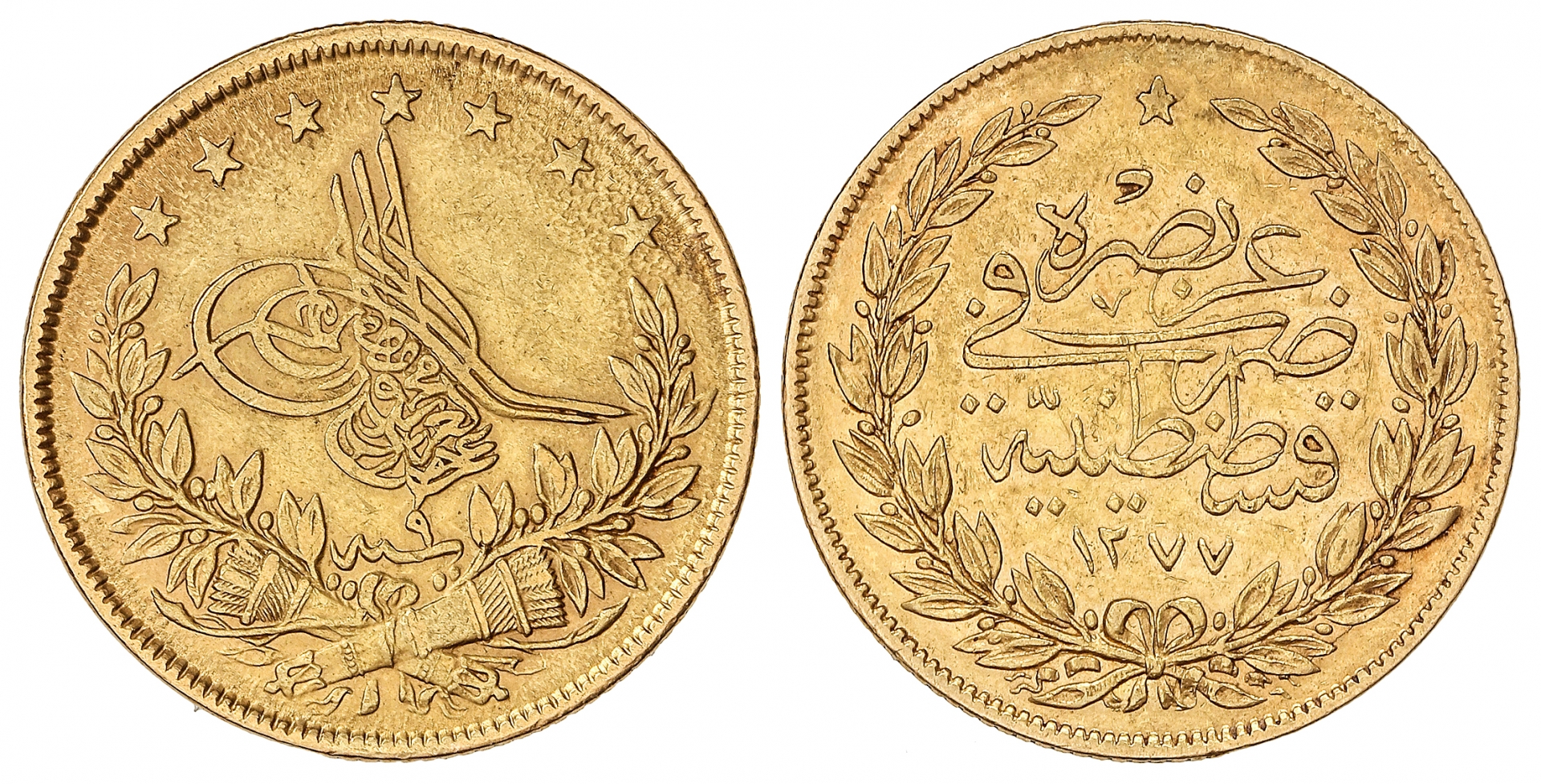 100 Kurush. 1277 d.H./9. ABDUL AZIZ (1861-1876 d.C.). 7,19 grs. AU. Fr-127; KM-696. MBC+.