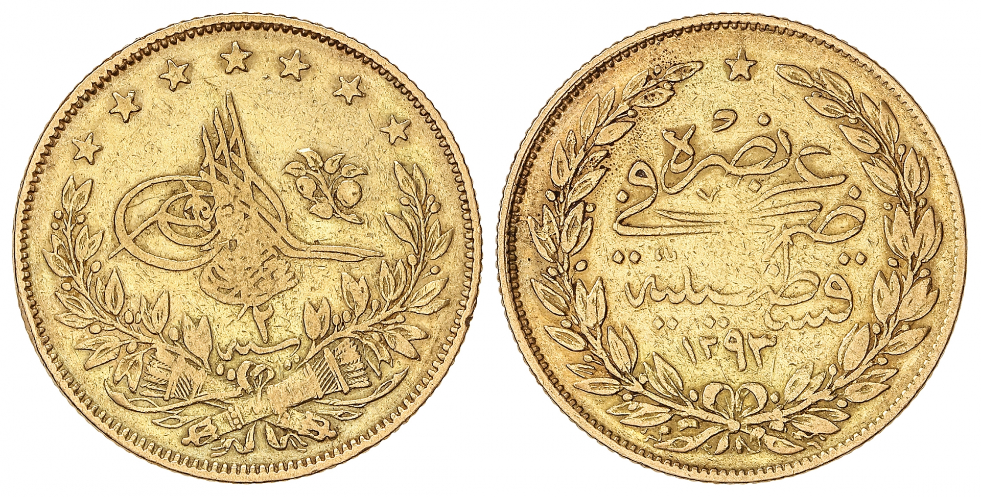 100 Kurush. 1293 d.H./2. ABDUL HAMID II (1876-1909 d.C.). 7,08 grs. AU. Fr-138; KM-725. MBC-.