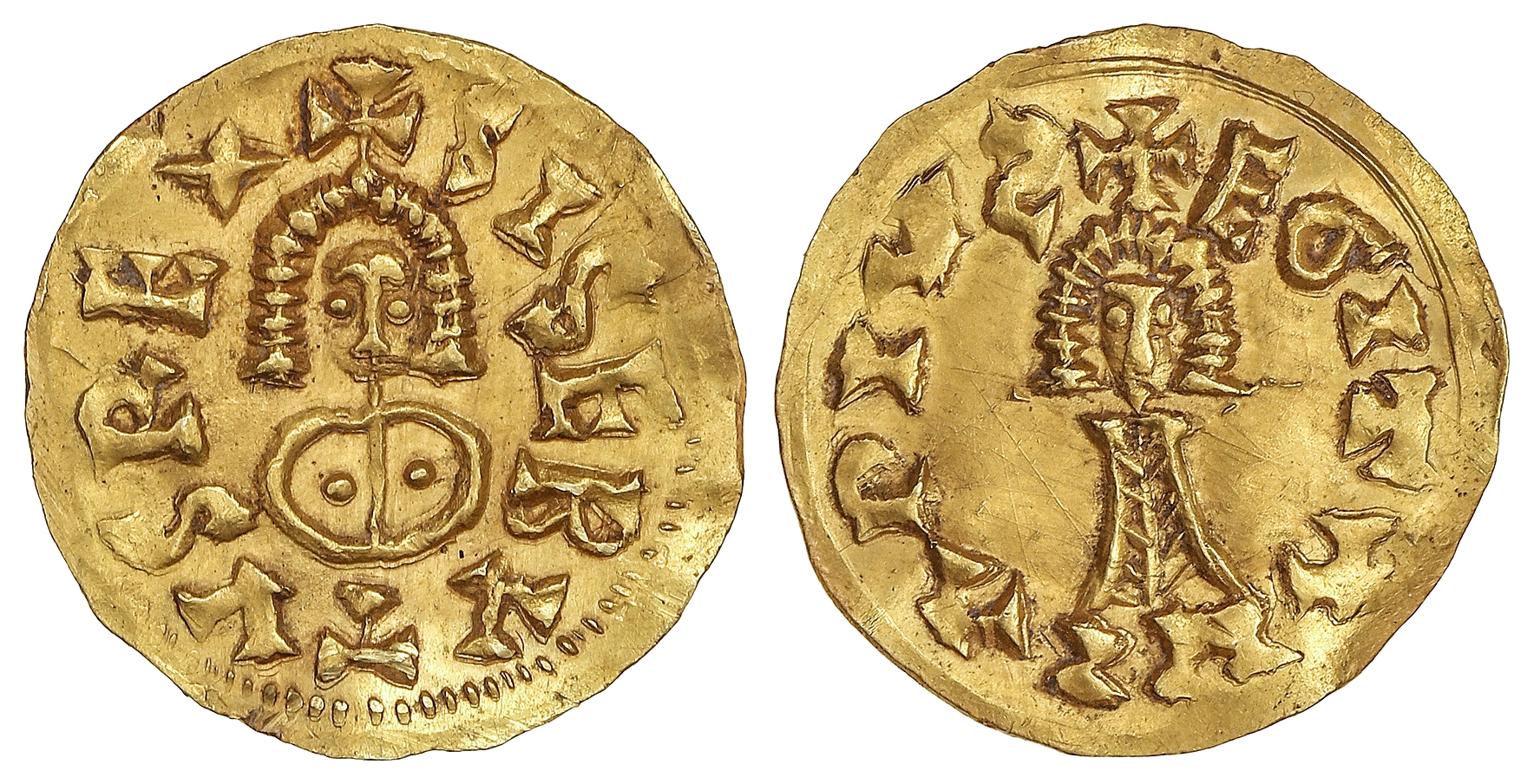 Triente. SISEBUTO (612-621 d.C.). EGITANIA (Lusitania). Anv.: SISEBVTVSREx. Rev.: EGITANIAPIV. 1,45 grs. AU. (Levemente alabeada). MUY RARA. VCC-256.5. EBC-/MBC+.