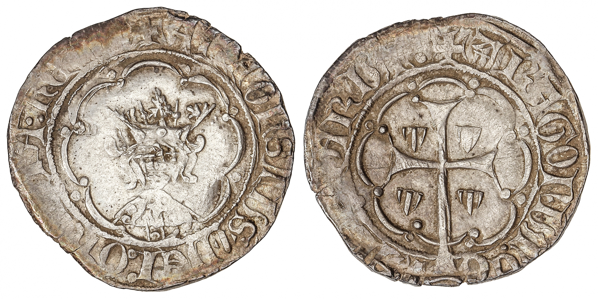 Ral. ALFONS IV. MALLORCA. Anv.: ALFONSVSDEI:GRATIA:REX. Busto de frente. Rev.: ARAGONVM.ET:MA(IORIC)ARVM. Cruz latina con escuditos catalanes en los espacios. 3,48 grs. Variante escudito catalán entre ALFONSUS y DEI. RARÍSIMA y NO RESEÑADA. Cru.VS-844 var. MBC+.