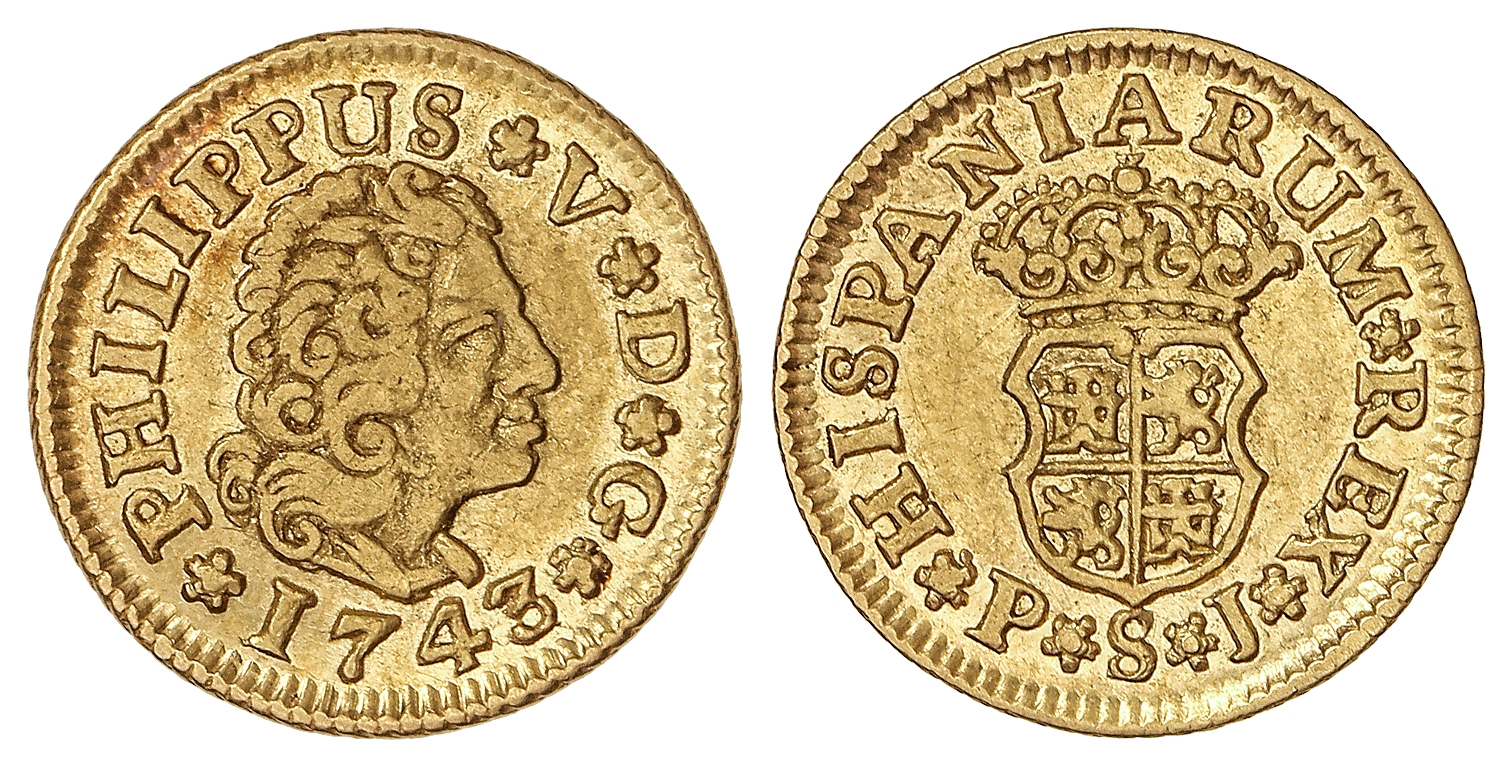 1/2 Escudo. 1743. SEVILLA. P.J. 1,76 grs. Cal-584. EBC-.