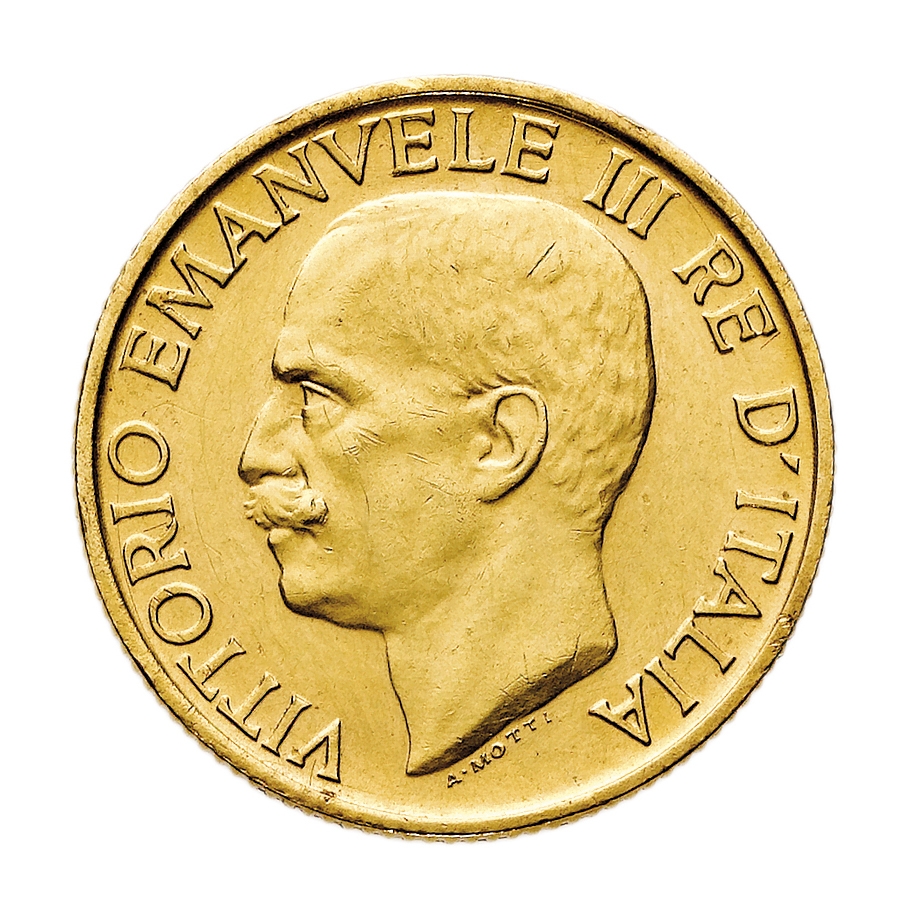 20 Lire Fascio 1923 - Zecca: Roma - Diritto: effigie del Re a sinistra - Rovescio: fascio littorio con scure a destra