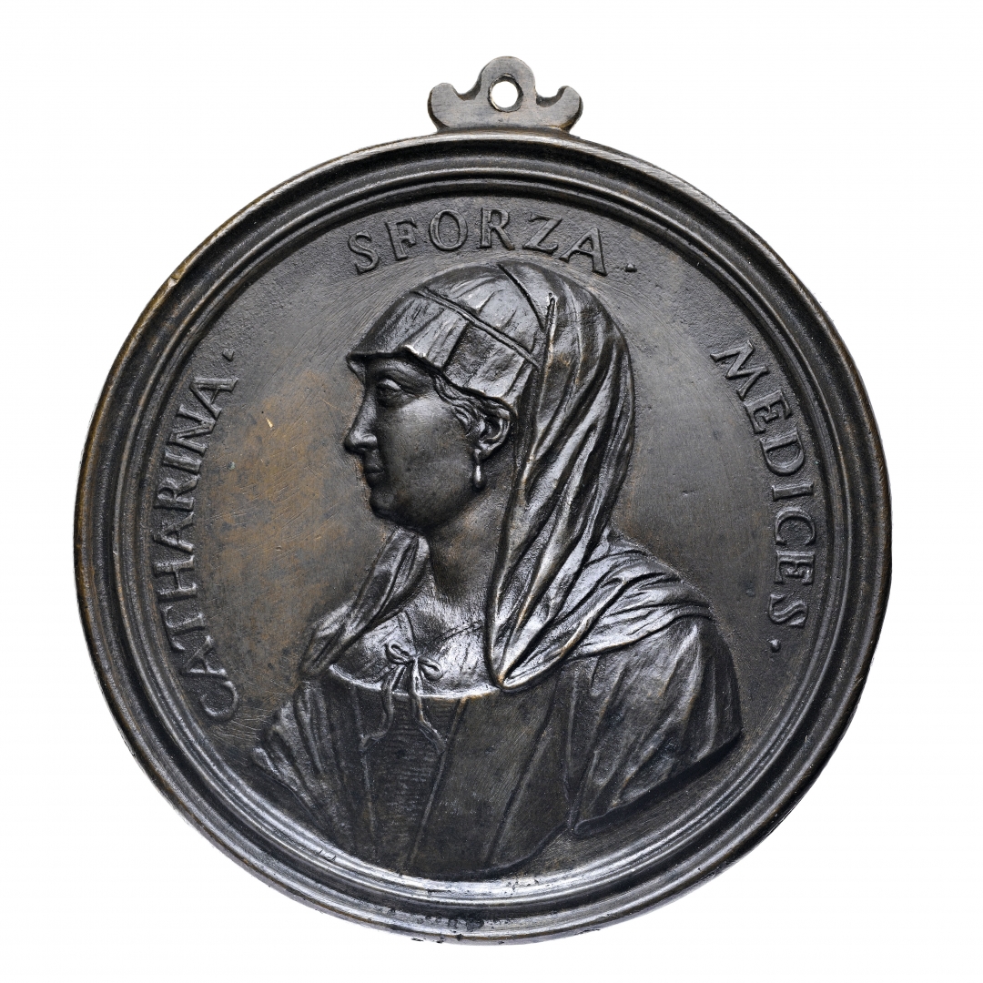 Caterina Sforza Rialto (1432-1509), moglie di Giovanni de' Medici - Medaglia (XVIII Sec.) - Diametro mm. 86 - gr. 159,60 - Opus Antonio Selvi (1679-1753) - Fondi lievemente lavorati - Splendida e rara fusione con apprezzabile patina marrone