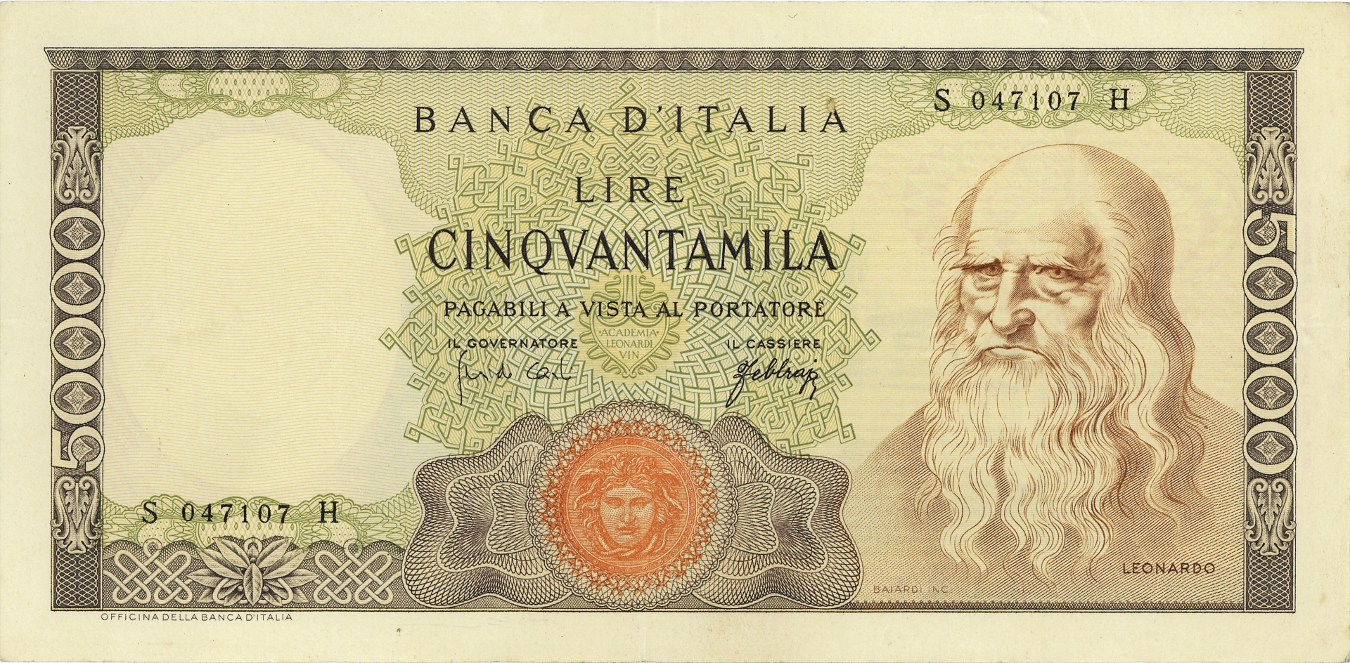 BIGLIETTO DI BANCA DA 50000 LIRE "LEONARDO" - D.M. 3.7.1967