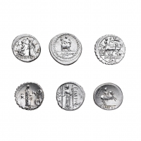 Secoli II/I a.C. - Insieme di sei Denari senza ripetizioni - Sono presenti, classificati con riferimento al Crawford: Memmia (313/1c), Fonteia (353/1c), Crepusia (361/1c), Roscia (412/1), Nonia (421/1), Claudia (494/23) - Quaità media molto buona, ottima in alcuni casi - Insieme di grande interesse