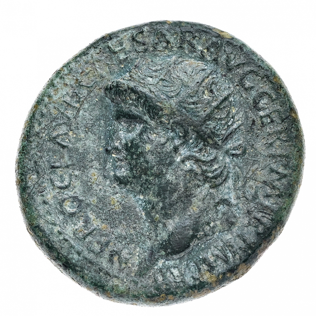 Dupondio databile al 67 d.C. - Zecca: Roma - Diritto: testa radiata dell'Imperatore a sinistra - Rovescio: Roma seduta a sinistra su corazza tiene una corona con la mano destra e il parazonium con la sinistra - gr. 13,95 - Lievi difetti al rovescio, ma di buona qualità con gradevole patina verde - Proveniente da una vendita privata Baranowsky