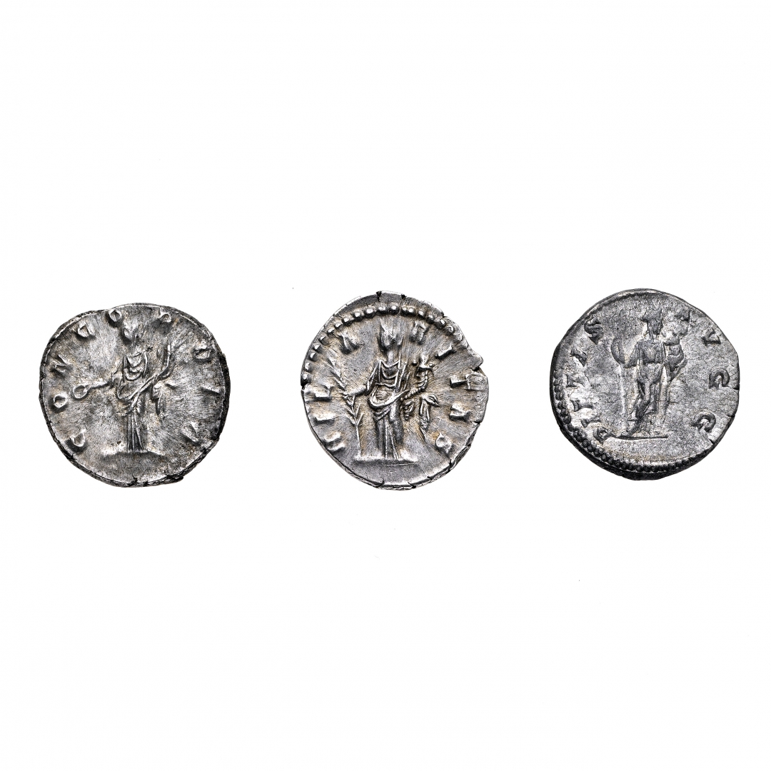 Secoli II/V d.C. - Collezione di 13 esemplari con nominativi femminili senza ripetizioni - Con riferimento al Cohen sono presenti: Sabina (Denario, Coh. n 1), Faustina Sr (Denario, Coh. n. 61), Faustina Jr (Denario, Coh. n. 54), Lucilla (Denario, Coh. n. 16), Crispina (2 esemplari, Denario, Coh. n. 5 e 18), Plautilla (Denario, Coh. n. 16), Giulia Domna (Denario, Coh. nò 164), Giulia Paola (Denario, Coh. n. 12), Giulia Mamea (Denario, Coh. n. 24), Otacilia Severa (Antoniniano, Coh. n. 17), Fausta (Follis, Coh. n. 6), Elena (Follis, Coh. n. 12) - Qualità media molto buona, ottima in alcuni casi - Da esaminare