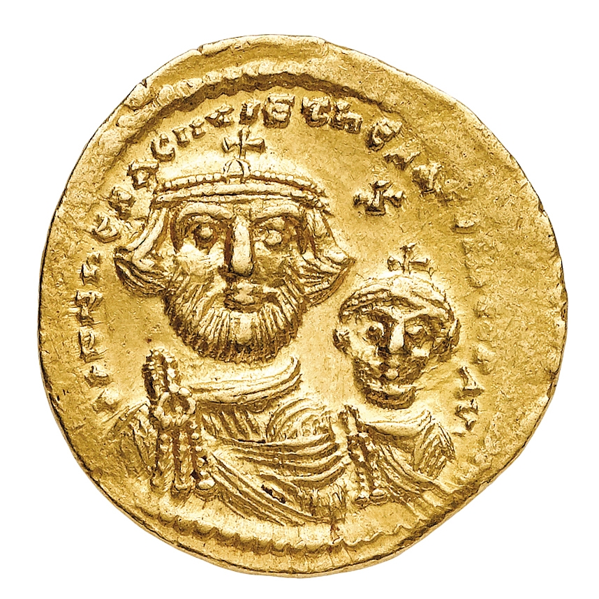 Eraclio (610-641) - Solido databile agli anni 629-631 - Zecca: Costantinopoli - Diritto: mezzi busti affiancati dell'Imperatore e del figlio Eraclio Costantino, entrambi con corona di fattura semplice sormontata da una piccola croce - Rovescio: croce potenziata su un basamento di tre gradini - gr. 4,49 - Lievi ondulazioni del tondello ma di buona qualità generale