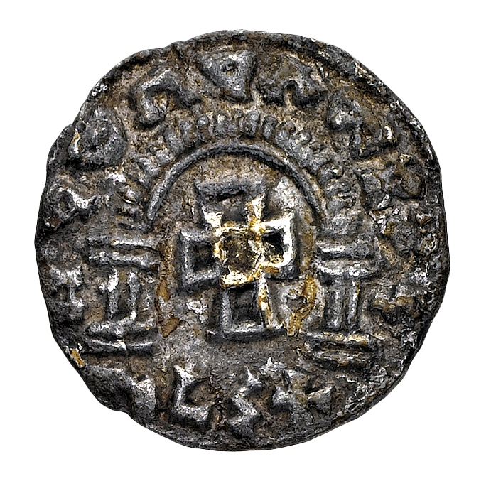 Monete Axumite - "AGD" - Unità in argento databile al periodo 525-550 d.C. - Diritto: busto coronato e corazzato di fronte  - Rovescio: croce entro un arco  - gr. 0,88 - Tracce di antica doratura - Molto rara