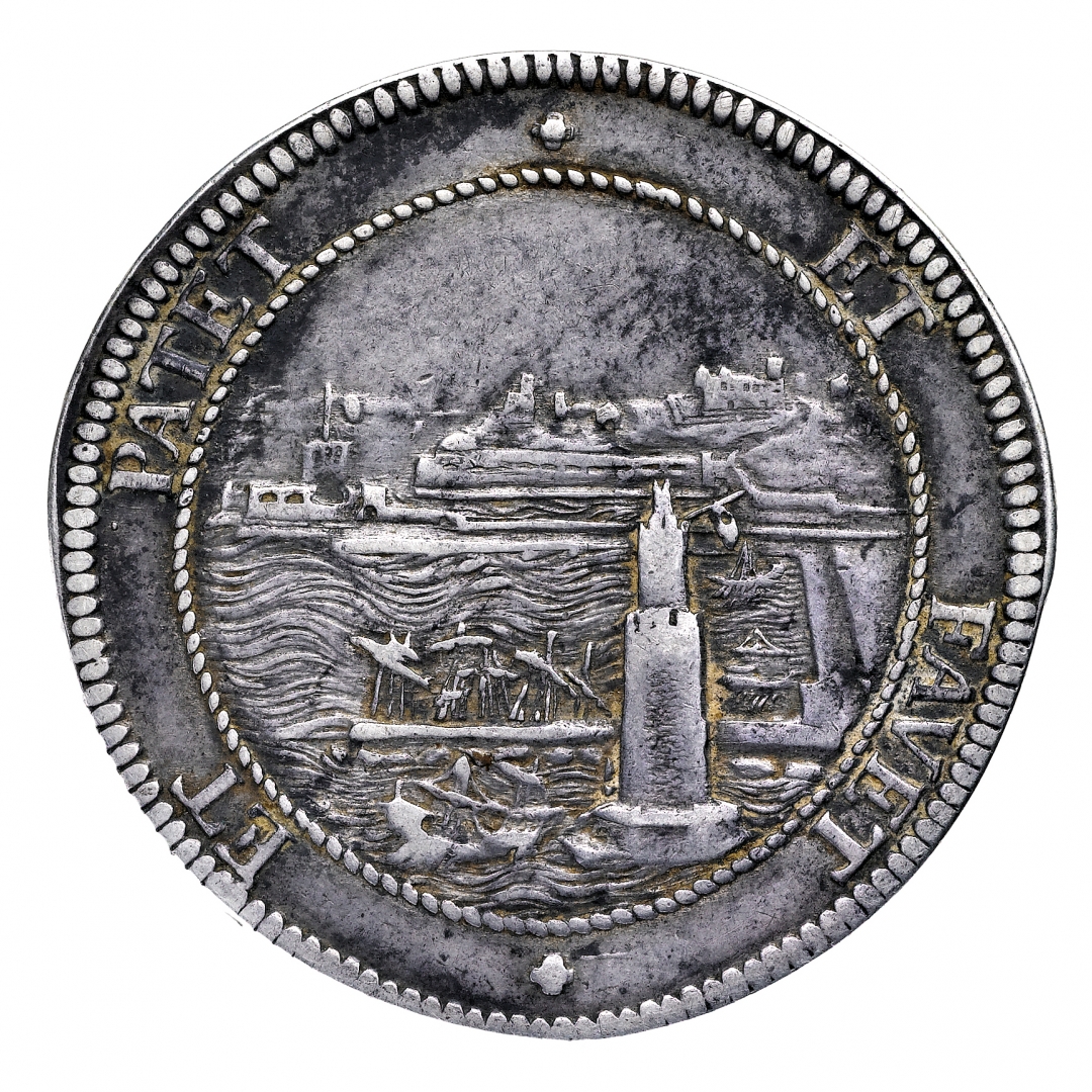 Cosimo III de' Medici (1670-1723) - Monetazione per Livorno - Tollero 1701 - Zecca: Firenze - Diritto: busto paludato e coronato del Granduca a destra - Rovescio: veduta del porto di Livorno - gr. 26,94 - Non comune - Gradevole patina di medagliere