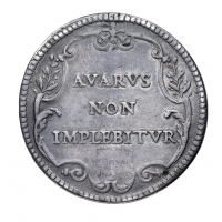 Innocenzo XI (1676-1689) - Mezza Piastra Anno VII - Zecca: Roma - Diritto: stemma sormontato dalle chiavi decussate e dalla tiara - Rovescio: motto entro cartella ornata di volute e rametti di alloro - gr. 15,52 - Non comune - Lieve traccia di appiccagnolo