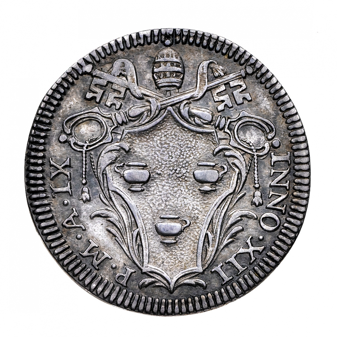 Innocenzo XII (1691-1700) - Giulio 1699 Anno IX - Zecca: Roma - Diritto: stemma sormontato dalle chiavi e dalla tiara - Rovescio: motto e data su quattro righe orizzontali - gr. 3,02 - Patina di medagliere