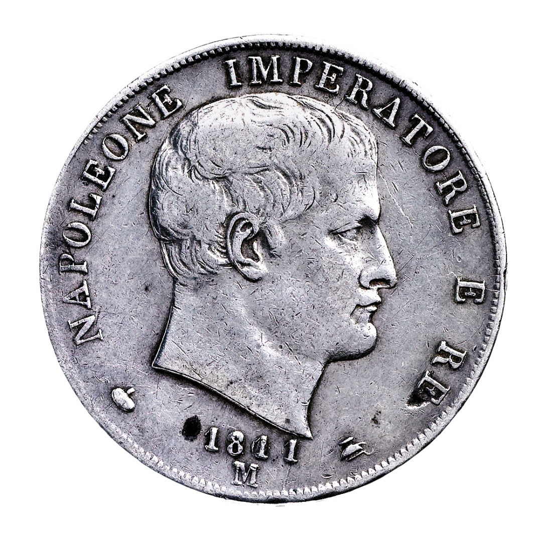 Napoleone I Re d'Italia (1805-1814) - 2 Lire 1811 - Zecca: Milano - Diritto: effigie di Napoleone a destra - Rovescio: stemma sovrapposto all'aquila napoleonica entro un padiglione coronato e riccamente ornato