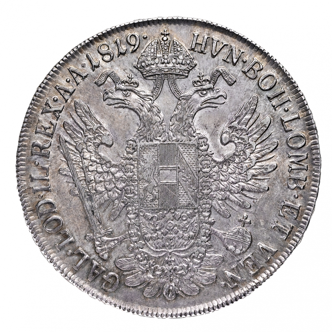 Francesco I d'Asburgo (1815-1835) - Tallero di Convenzione 1819 - Zecca: Milano - Diritto: effigie laureata di Francesco I a destra  - Rovescio: aquila bicipite coronata con stemma del Lombardo-Veneto sul petto  - Raro - Di qualità molto buona, con tracce dell'originaria lucentezza dei fondi