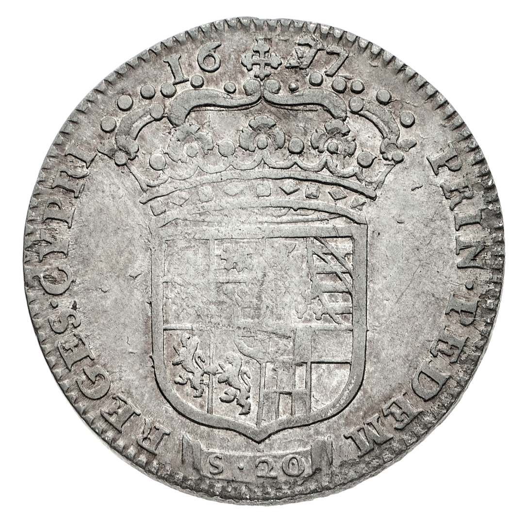 Periodo della Reggenza (1675-1680) - Lira 1677 - Zecca: Torino - Diritto: busti della Duchessa madre e del giovane Duca accollati a destra - Rovescio: stemma completo di Casa Savoia coronato - gr. 6,02 - Non comune - BB