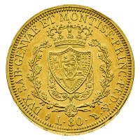 80 Lire 1827 - Zecca: Torino - Diritto: effigie del Re a sinistra - Rovescio: stemma completo di Casa Savoia coronato e circondato dal Collare dell'Annunziata - gr. 25,80 - Lievi colpetti al contorno, altrimenti SPL