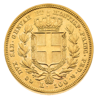100 Lire 1836 - Zecca: Genova - Diritto: effigie del Re a sinistra - Rovescio: stemma di Casa Savoia coronato e circondato dal Collare dell'Annunziata - gr. 32,25 - Lievi colpetti al contorno, altrimenti migliore di SPL