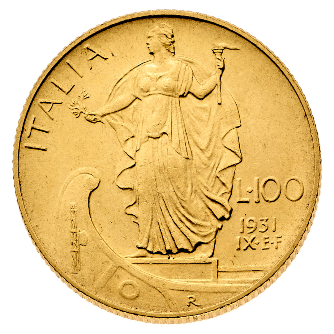 100 Lire Italia su Prora 1931 Anno IX - Zecca: Roma - Diritto: effigie del Re a sinistra - Rovescio: l'Italia ritta su prora con fiaccola e ramo d'ulivo - gr. 8,80 - q.FDC
