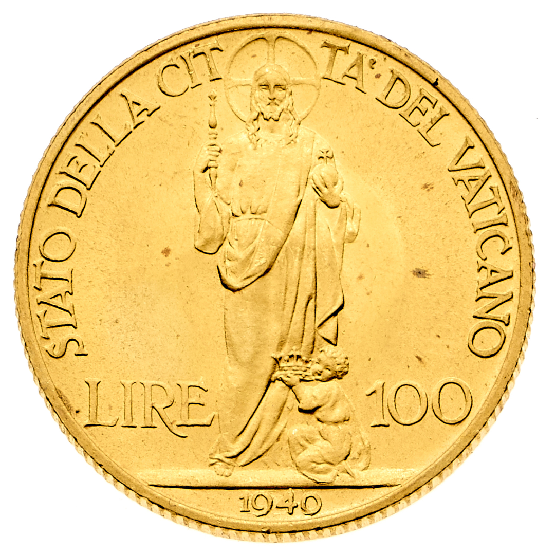 Pio XII (1939-1958) - 100 Lire 1940 - Zecca: Roma - Diritto: busto del Papa a destra - Rovescio: figura del Cristo Re stante di fronte con scettro e globo crucigero - gr. 5,20 - q.FDC - In lotto con serie divisionale