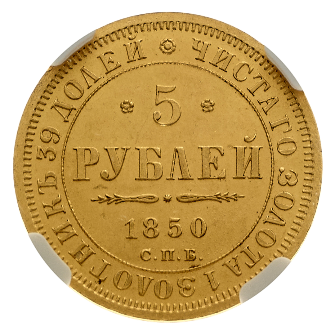 Nicola I (1825-1855) - 5 Rubli 1850 NGC MS 63 - Zecca: San Pietroburgo - Diritto: aquila bicipite coronata - Rovescio: legenda su tre righe - gr. 6,54 - Rara in questa conservazione - Cert. #8217326-018