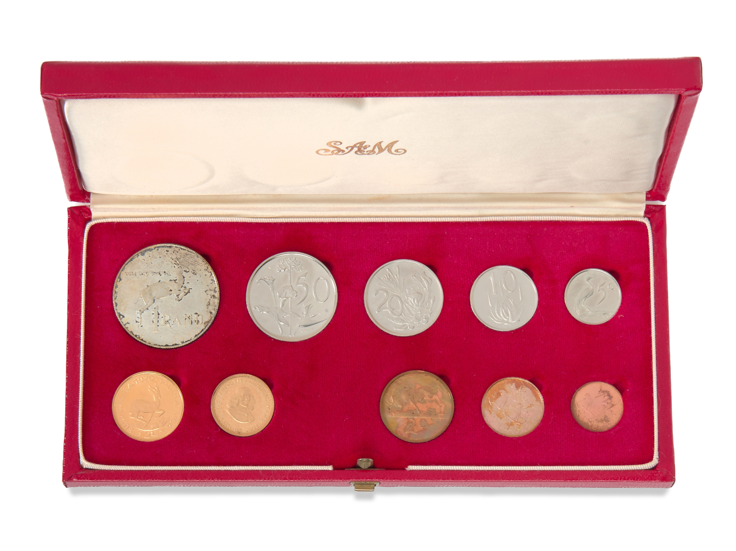 Repubblica (dal 1961) - Serie completa di 10 valori (1/2, 1 e 2 Cents in rame, 5, 10, 20, 50 Cents e 1 Rand in argento, 1 e 2 Rand in oro) 1970 - In cofanetto originale - FDC