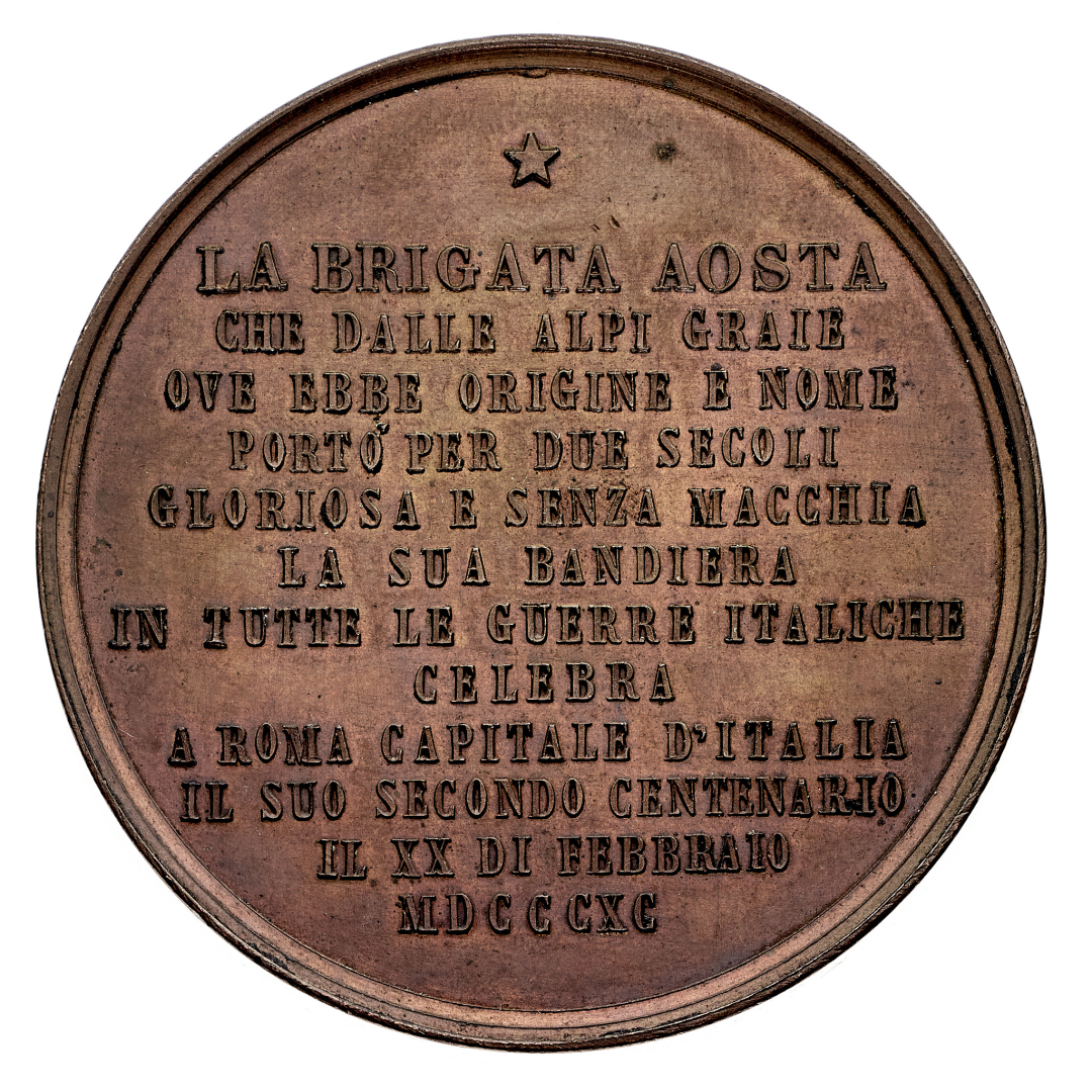 Regno d'Italia - Medaglia 1890 "Brigata Aosta" - Opus Filippo Speranza - Diametro mm. 58 e peso gr. 110,54 - Migliore di SPL
