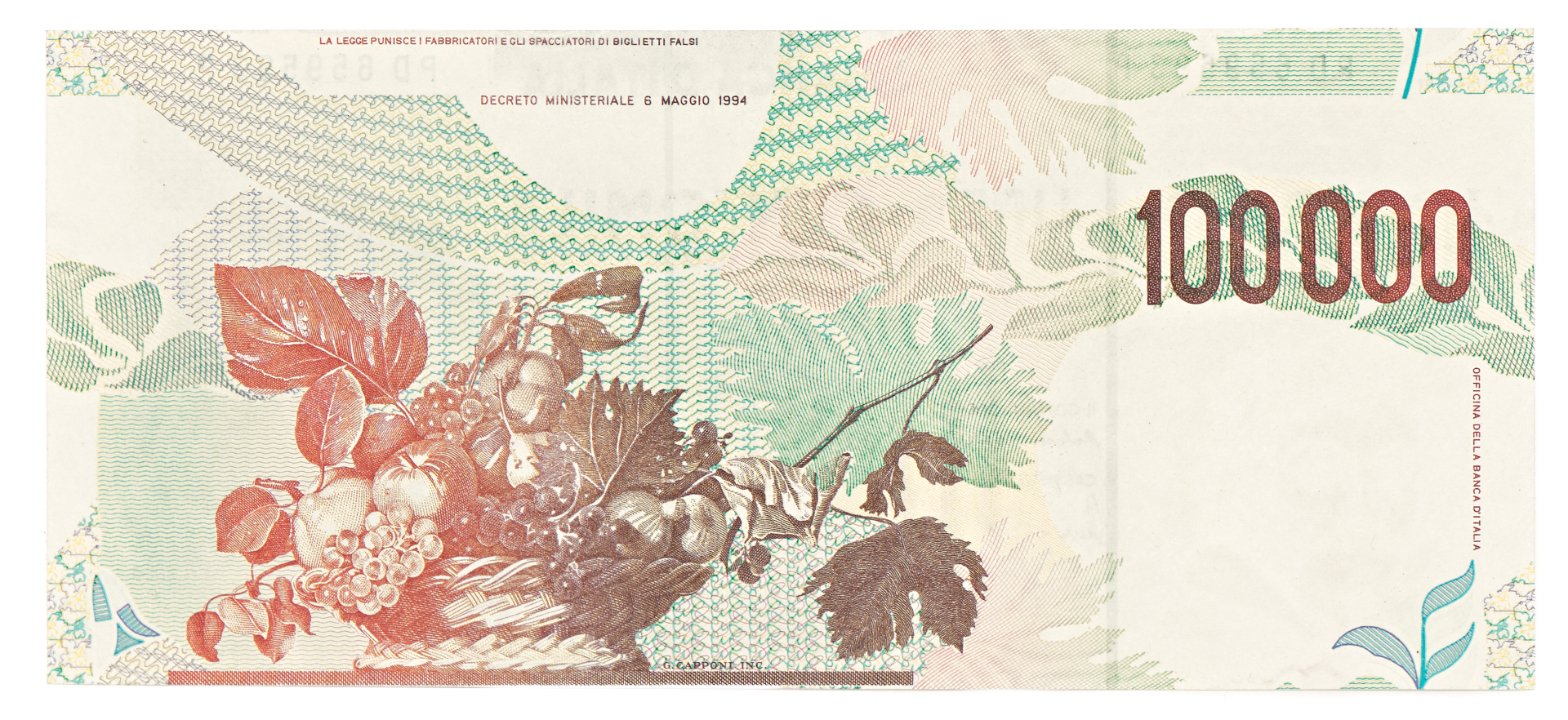 Biglietto di Banca da 100.000 Lire "Caravaggio" I tipo - Spostamento del taglio - FDS