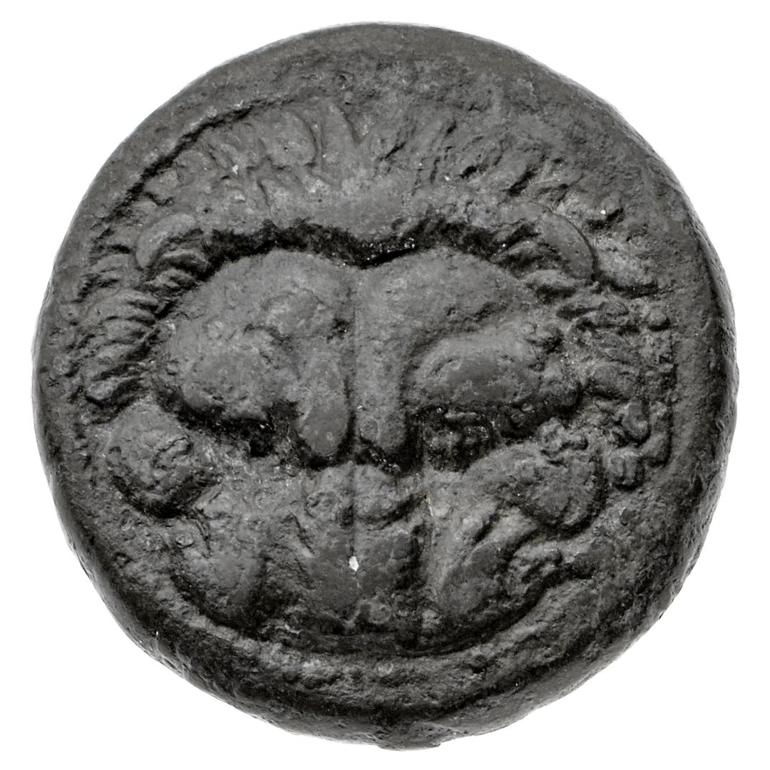 Reggio - Bronzo databile al periodo 351-280 a.C. - Diritto: testa di leone frontale - Rovescio: testa di Apollo a destra - gr. 10,50 - BB