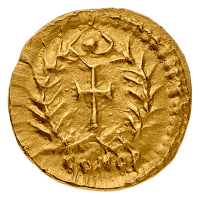 Tremisse databile al 475 d.C. - Zecca: Mediolanum - Diritto: busto diademato, drappeggiato e corazzato dell'Imperatore a destra - Rovescio: croce entro corona - gr. 1,52 - Rara - Migliore di SPL