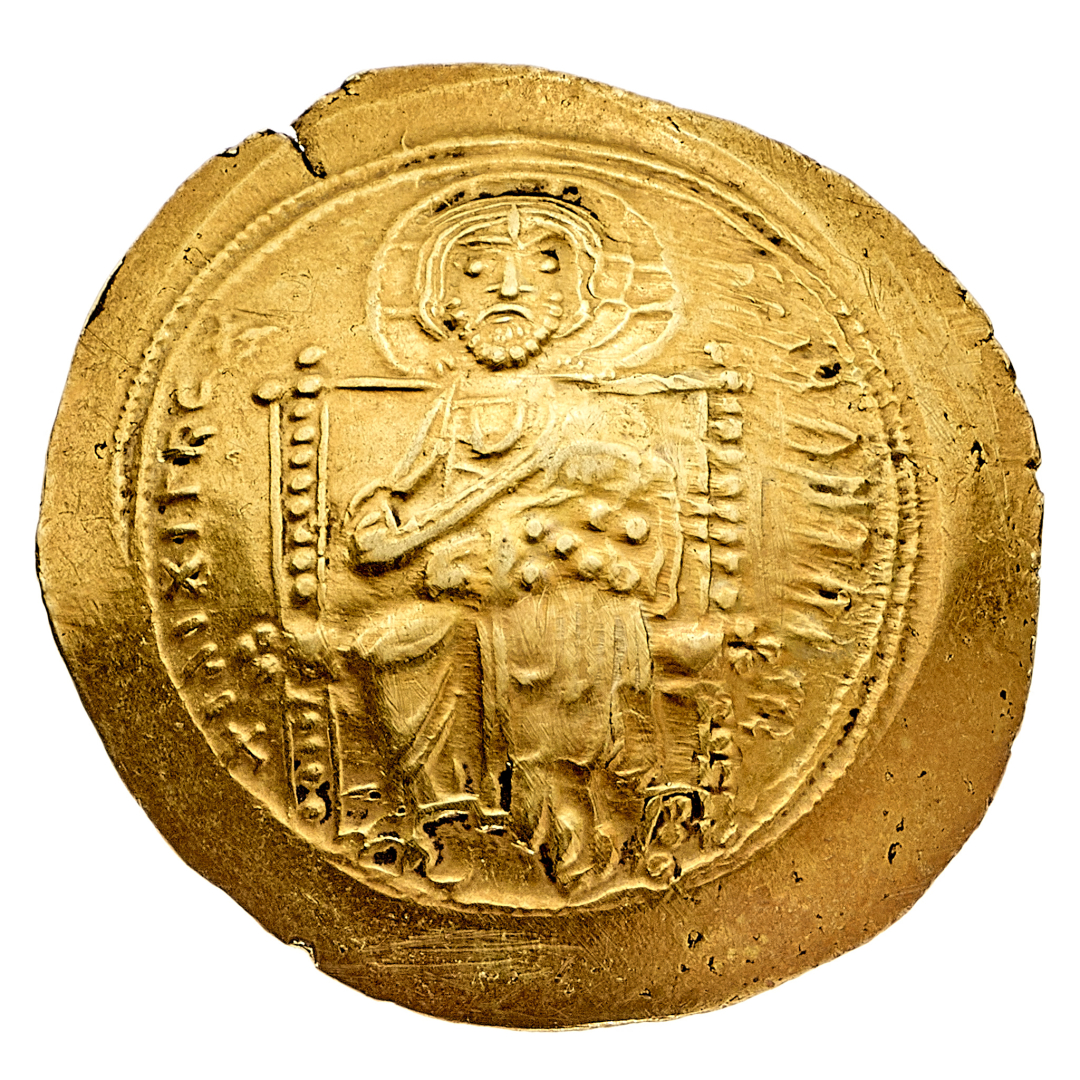 Costantino X (1059-1067) - Histamenon - Zecca: Costantinopoli - Diritto: Gesù Cristo benedicente seduto di fronte - Rovescio: l'Imperatore stante di fronte tiene un labarum con la mano destra e un globo crucigero con la sinistra - gr. 4,36 - Lieve frattura di conio, altrimenti migliore di SPL